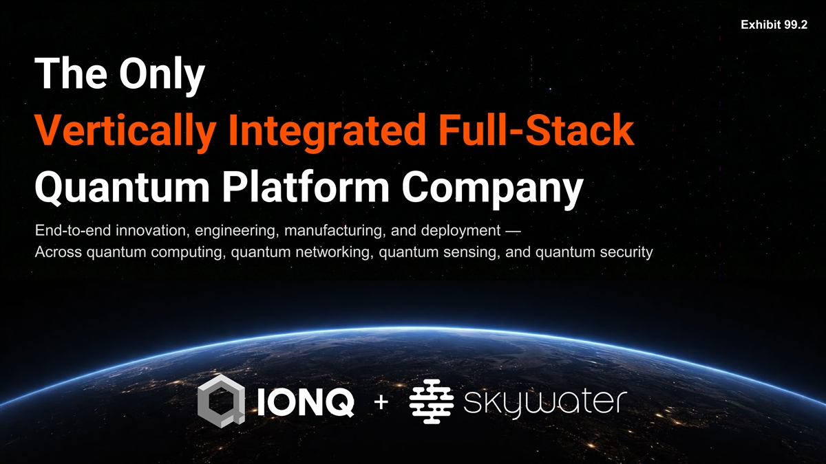 Important Information and Where to Find It In connection with the acquisition described in this presentation (the “Transaction”), IonQ, Inc. (“IonQ”) intends to file with the Securities and Exchange Commission (the “SEC”) a Registration Statement on Form S-4 (the “Registration Statement ) which will include a prospectus with respect to the shares of IonQ common stock (the “IonQ Shares”) to be issued in the Transaction and a proxy statement (the “Proxy Statement/Prospectus”) for stockholders of SkyWater Technology, Inc. (“SkyWater”) and SkyWater intends to file with the SEC the proxy statement. The definitive proxy statement (if and when available following the effectiveness of the Registration Statement) will be mailed to stockholders of SkyWater. Each of IonQ and SkyWater may also file with or furnish to the SEC other relevant documents regarding the Transaction. This presentation is not a substitute for the Registration Statement, the Proxy Statement/Prospectus or any other document that IonQ or SkyWater may file with the SEC or mail to SkyWater’s stockholders in connection with the Transaction. INVESTORS AND SECURITY HOLDERS OF IONQ AND SKYWATER ARE URGED TO READ THE REGISTRATION STATEMENT AND THE PROXY STATEMENT/PROSPECTUS INCLUDED WITHIN THE REGISTRATION STATEMENT WHEN THEY BECOME AVAILABLE, AS WELL AS ANY OTHER RELEVANT DOCUMENTS FILED WITH THE SEC IN CONNECTION WITH THE TRANSACTION OR INCORPORATED BY REFERENCE INTO THE REGISTRATION STATEMENT AND THE PROXY STATEMENT/PROSPECTUS (INCLUDING ANY AMENDMENTS OR SUPPLEMENTS THERETO), BECAUSE THEY WILL CONTAIN IMPORTANT INFORMATION REGARDING IONQ, SKYWATER, THE TRANSACTION AND RELATED MATTERS. The documents filed by IonQ with the SEC also may be obtained free of charge at IonQ’s website at investors.IonQ.com. The documents filed by SkyWater with the SEC also may be obtained free of charge at SkyWater’s website at ir.skywatertechnology.com. Participants in the Solicitation IonQ, SkyWater and certain of their respective directors and executive officers may be deemed to be participants in the solicitation of proxies from the stockholders of SkyWater in connection with the Transaction under the rules of the SEC. Information about the interests of the directors and executive officers of IonQ and SkyWater and other persons who may be deemed to be participants in the solicitation of stockholders of SkyWater in connection with the Transaction and a description of their direct and indirect interests, by security holdings or otherwise, will be included in the Proxy Statement/Prospectus, which will be filed with the SEC. Information about SkyWater’s directors and executive officers is set forth in SkyWater’s proxy statement for its 2025 Annual Meeting of Stockholders on Schedule 14A filed with the SEC on April 8, 2025, SkyWater’s Annual Report on Form 10-K for the year ended December 29, 2024 and any subsequent filings with the SEC. Information about certain of IonQ’s directors and executive officers is set forth in IonQ’s proxy statement for its 2025 Annual Meeting of Stockholders on Schedule 14A filed with the SEC on April 28, 2025 and any subsequent filings with the SEC. Additional information regarding the direct and indirect interests of those persons and other persons who may be deemed participants in the Transaction may be obtained by reading the Proxy Statement/Prospectus regarding the Transaction when it becomes available. Free copies of these documents may be obtained as described above. No Offer or Solicitation This communication is for informational purposes only and does not constitute, or form a part of, an offer to sell or the solicitation of an offer to buy any securities or a solicitation of any vote or approval, nor shall there be any sale of securities in any jurisdiction in which such offer, solicitation or sale would be unlawful prior to registration or qualification under the securities laws of any such jurisdiction. No offer of securities shall be made except by means of a prospectus meeting the requirements of Section 10 of the Securities Act of 1933, as amended, and otherwise in accordance with applicable law. Trademarks The companies depicted in the photographs herein, or in any third-party trademarks, including names, logos and brands, referenced in this presentation, are the property of their respective owners. All references to third-party trademarks are for identification purposes only and nothing herein should be considered to be an endorsement, authorization or approval by any such company. Note to Investors Regarding Forward-Looking Statements This presentation contains “forward-looking statements” within the meaning of the federal securities laws, including Section 27A of the U.S. Securities Act of 1933, as amended, and Section 21E of the Securities Exchange Act of 1934, as amended. All statements contained in this presentation other than statements of historical fact are forward-looking statements. These forward-looking statements are based on IonQ’s and SkyWater’s current expectations, estimates and projections about the expected date of closing of the Transaction and the potential benefits thereof, their respective businesses and industries, management’s beliefs and certain assumptions made by IonQ and SkyWater, all of which are subject to change. All forward-looking statements by their nature address matters that involve risks and uncertainties, many of which are beyond our control and are not guarantees of future results, such as statements about the consummation of the Transaction and the anticipated benefits thereof. These and other forward-looking statements, including the failure to consummate the Transaction or to make or take any filing or other action required to consummate the Transaction in a timely matter or at all, are not guarantees of future results and are subject to risks, uncertainties and assumptions that could cause actual results to differ ma