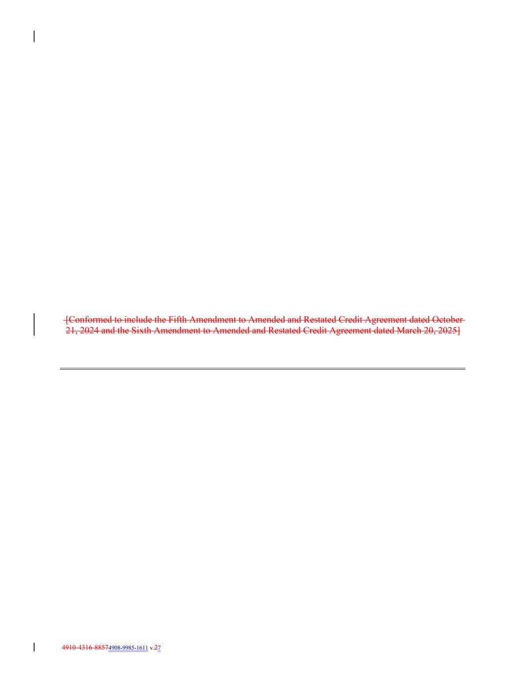 4910-4316-88574908-9985-1611 v.27 [Conformed to include the Fifth Amendment to Amended and Restated Credit Agreement dated October 21, 2024 and the Sixth Amendment to Amended and Restated Credit Agreement dated March 20, 2025]