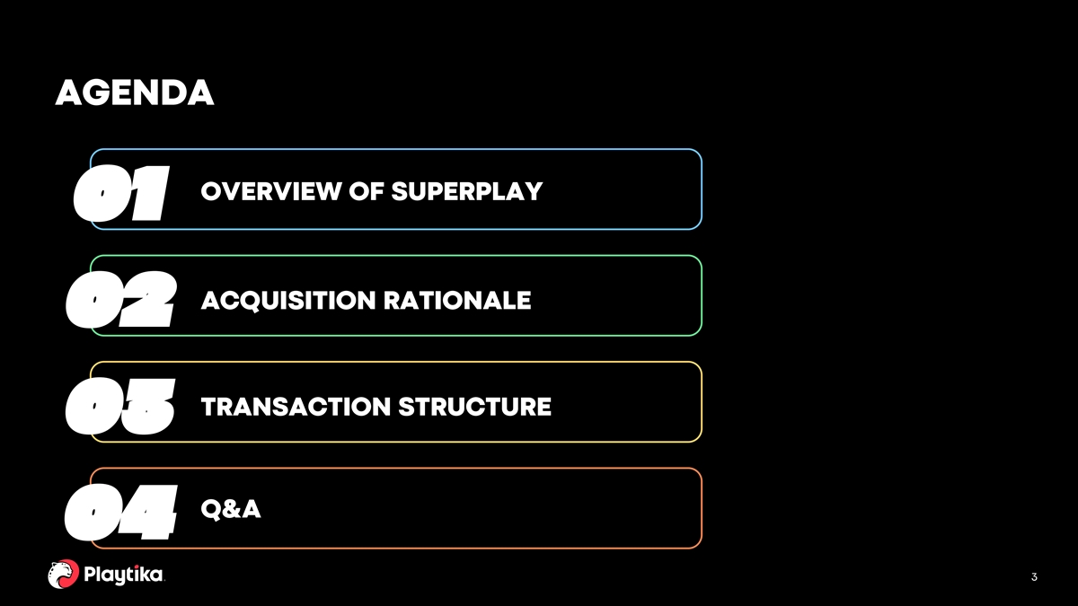 AGENDA OVERVIEW OF SUPERPLAY 01 ACQUISITION RATIONALE 02 TRANSACTION STRUCTURE 03 Q&A 04 3