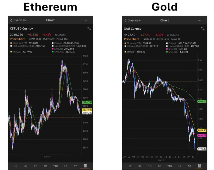 “As many have noticed, crypto and particularly ETH have outperformed the broader market since the Iran war commenced, with ETH rising 18% and outperforming equities by 2,450bp. This is a marked contrast to Gold (a traditional store of value), which has fallen more than 15%. Crypto is demonstrating itself to be a good ‘war time’ store of value,” said Thomas “Tom” Lee, Chairman of Bitmine.