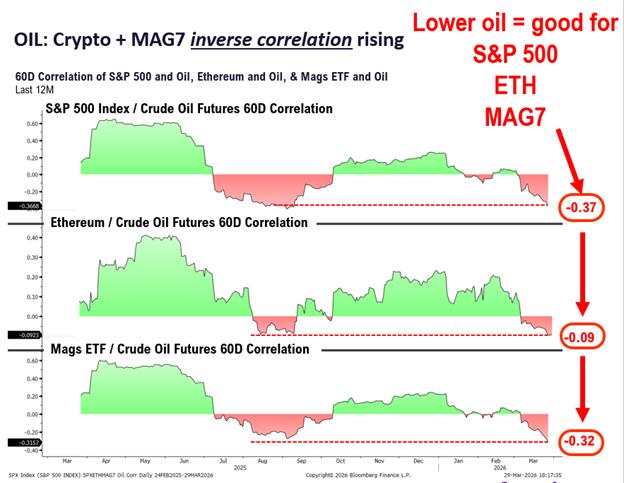 “The inverse correlation of crypto (and equities) to oil has been increasing and is at the highest levels in the past year. This is logical. Until equity markets become comfortable with the future trajectory of oil prices, rising oil is a headwind for equities and crypto. And in a sense, the crypto winter likely ends when the upside risk to oil prices peaks,” continued Lee.