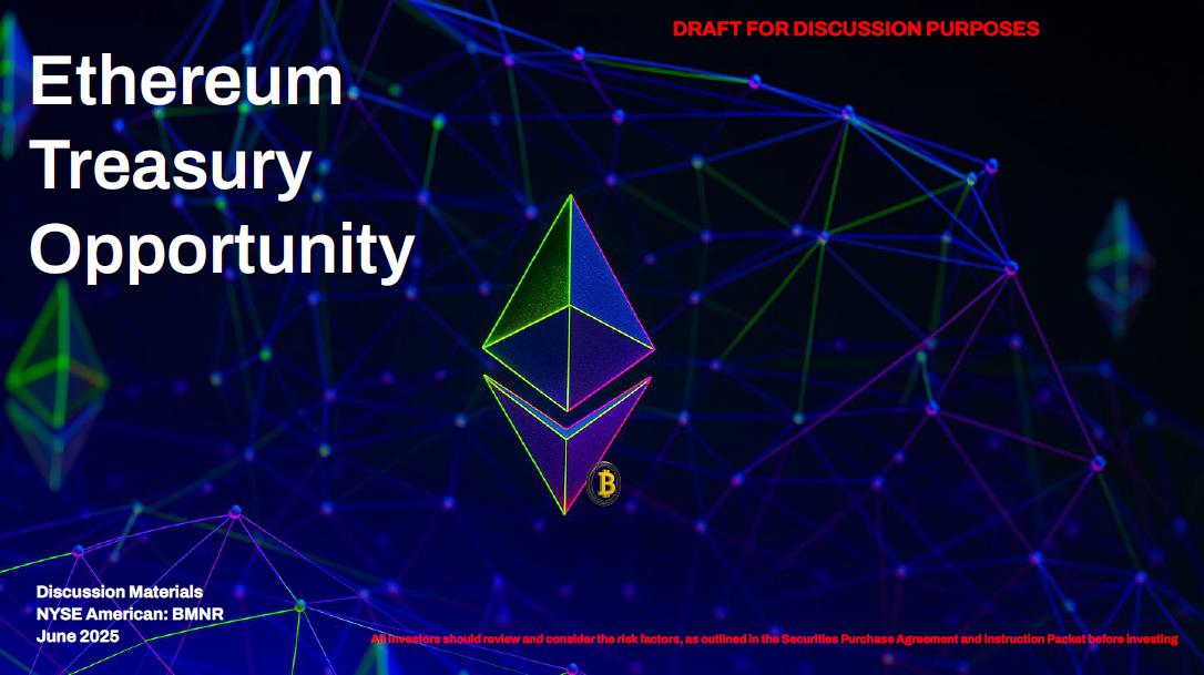 Ethereum Treasury Opportunity Discussion Materials NYSE American: BMNR June 2025 All Investors should review and consider the risk factors, as outlined in the Securities Purchase Agreement and Instruction Packet before investing DRAFT FOR DISCUSSION PURPOSES