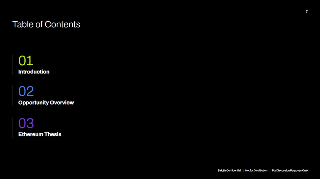 7 01 Introduction 02 Opportunity Overview 03 Ethereum Thesis Strictly Confidential | Not for Distribution | For Discussion Purposes Only Table of Contents