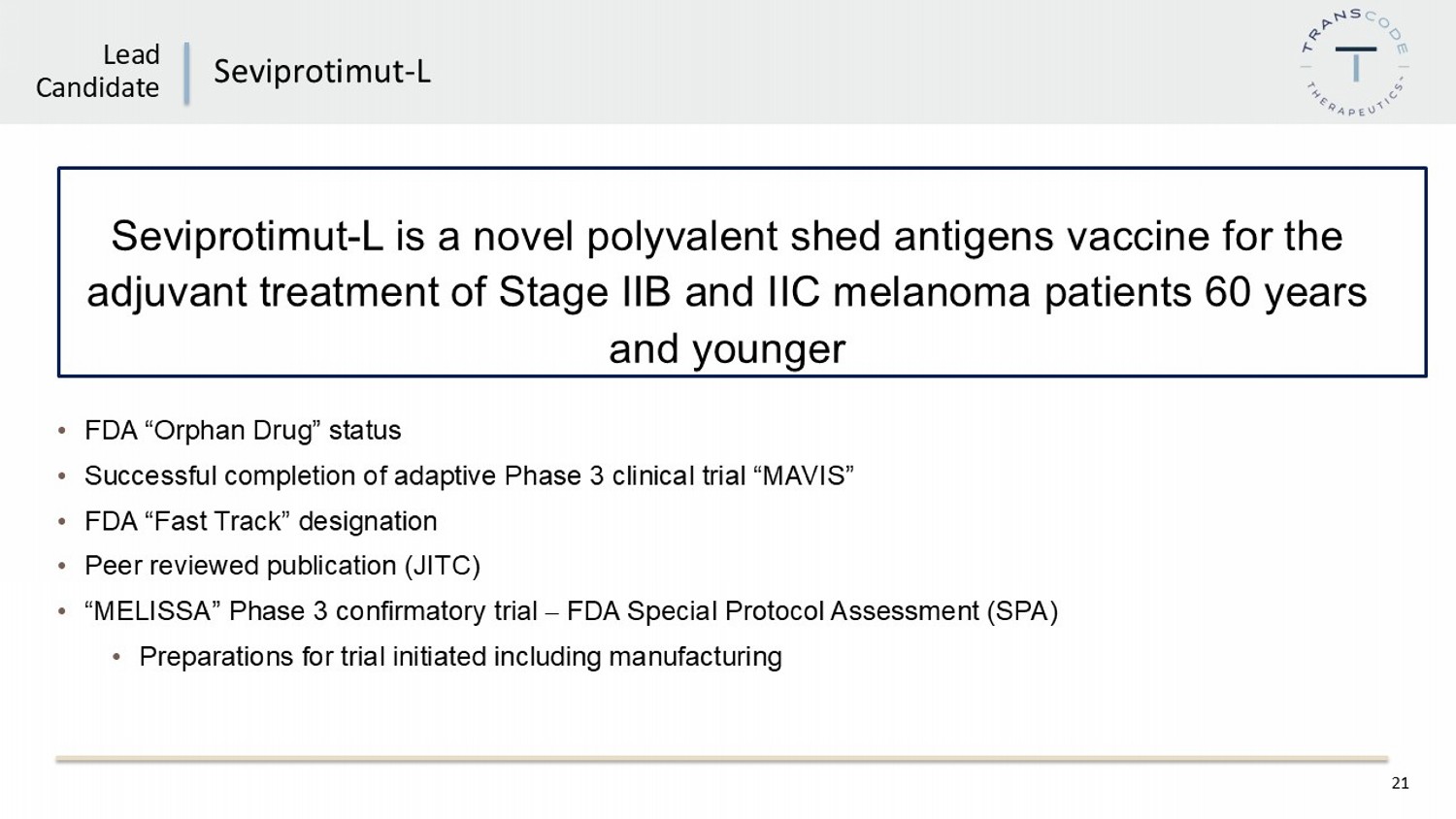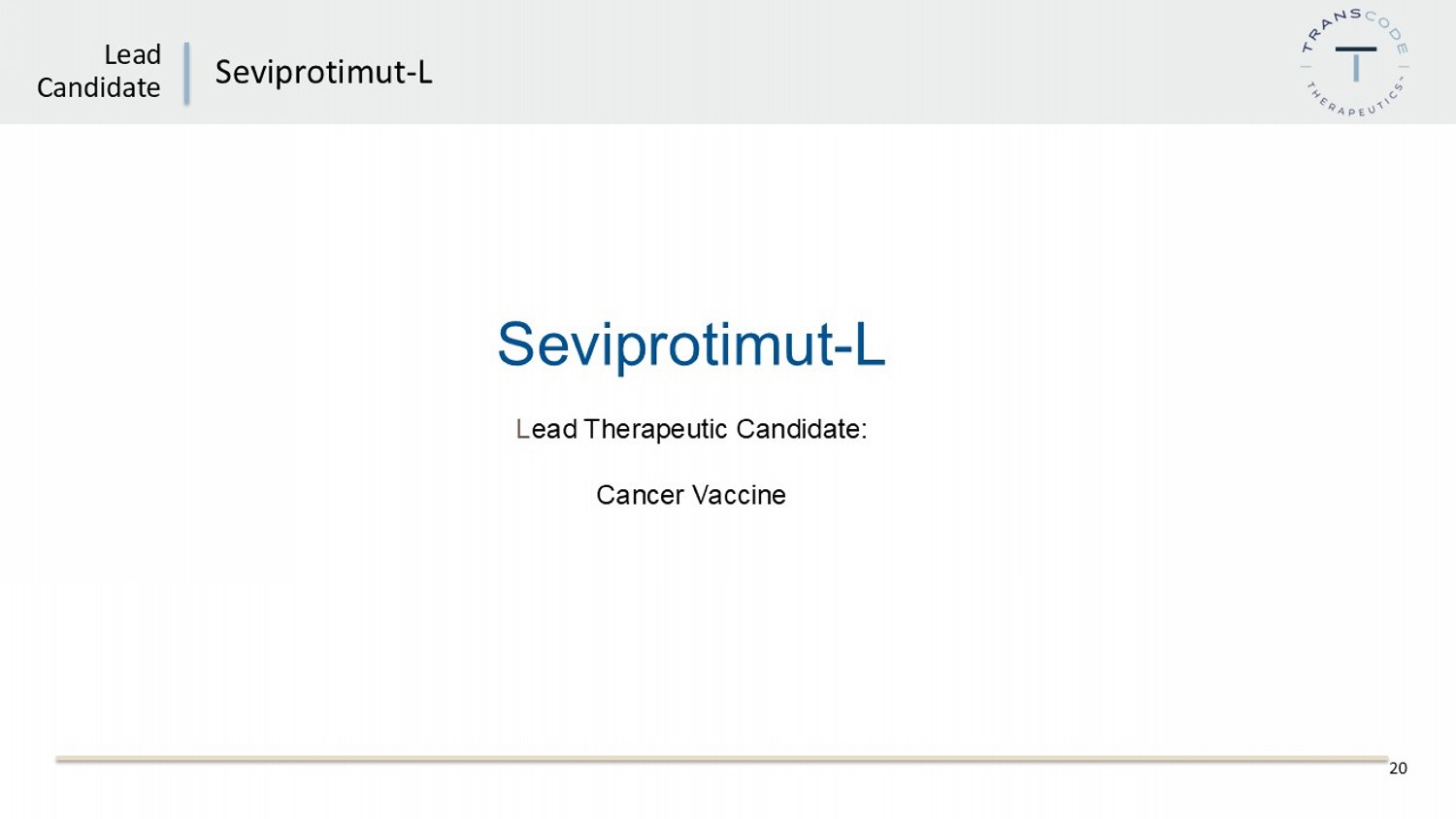 Seviprotimut - L Lead Candidate 20 Seviprotimut - L L ead Therapeutic Candidate: Cancer Vaccine