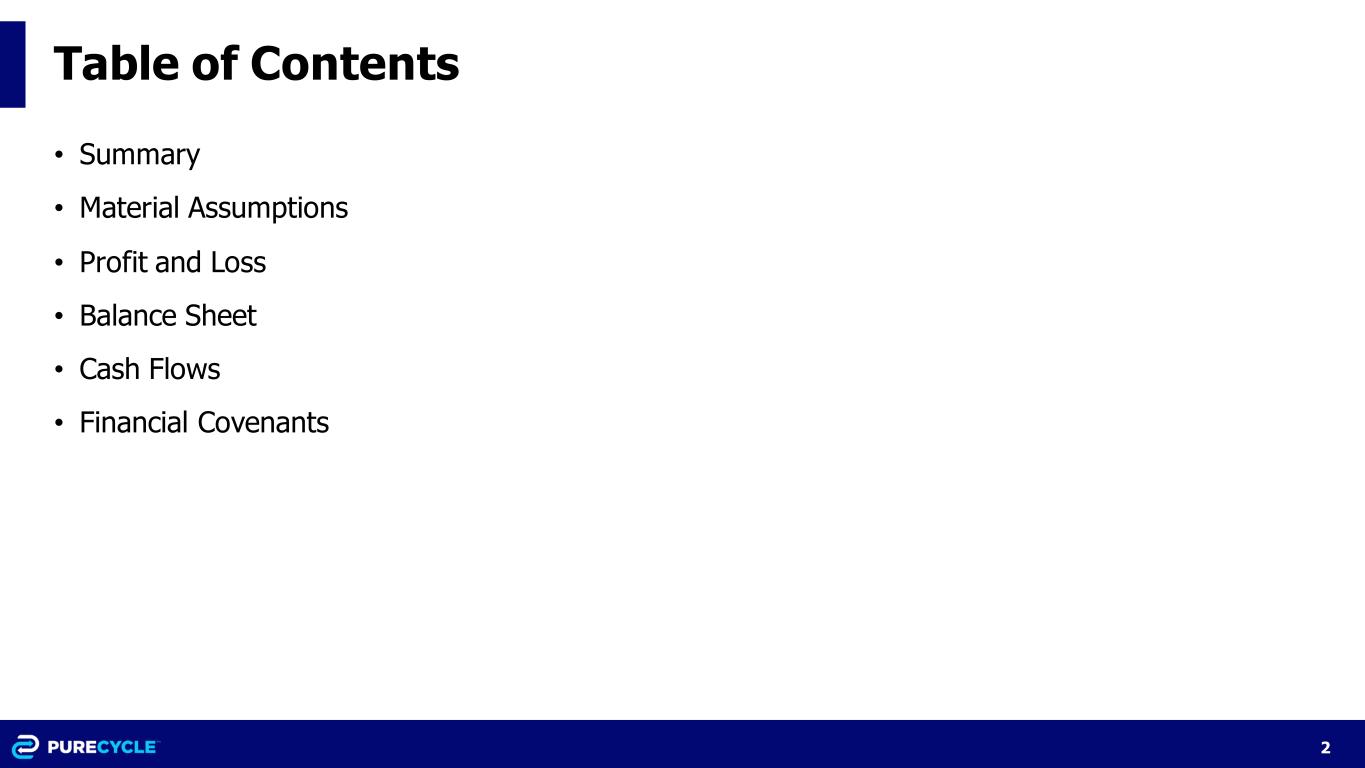2 Table of Contents • Summary • Material Assumptions • Profit and Loss • Balance Sheet • Cash Flows • Financial Covenants