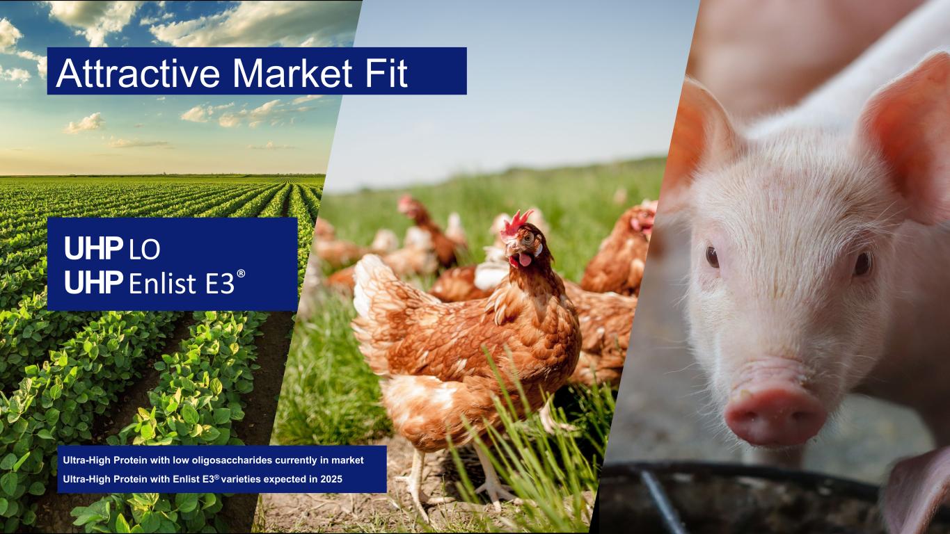 Attractive Market Fit UHP LO UHP Enlist E3® Ultra-High Protein with low oligosaccharides currently in market Ultra-High Protein with Enlist E3® varieties expected in 2025