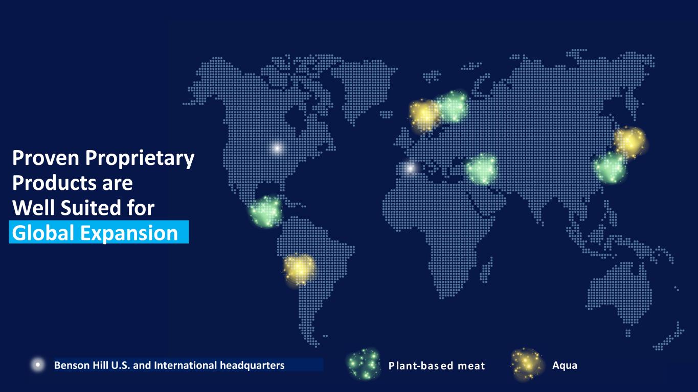 Proven Proprietary Products are Well Suited for Global Expansion P lant-bas ed meat AquaBenson Hill U.S. and International headquarters