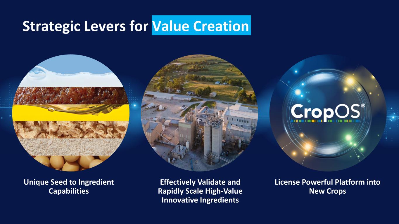 Strategic Levers for Value Creation Unique Seed to Ingredient Capabilities Effectively Validate and Rapidly Scale High-Value Innovative Ingredients License Powerful Platform into New Crops
