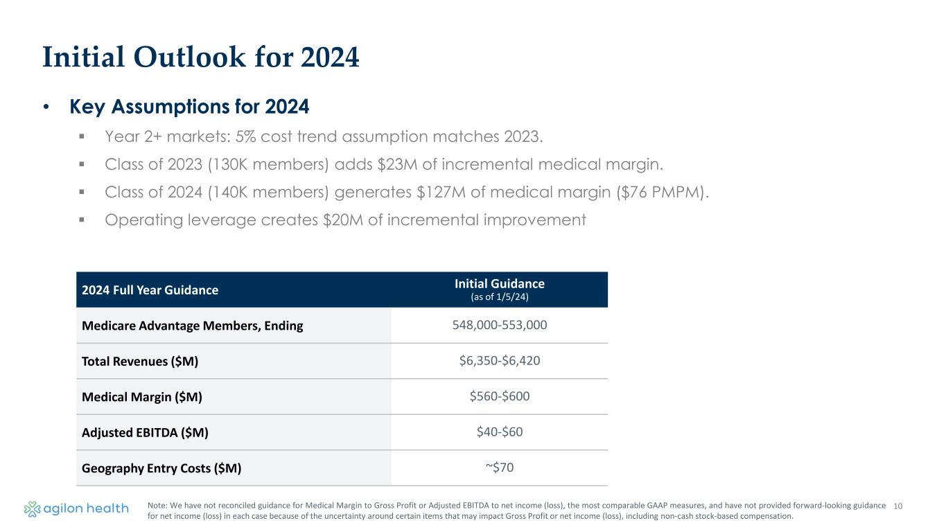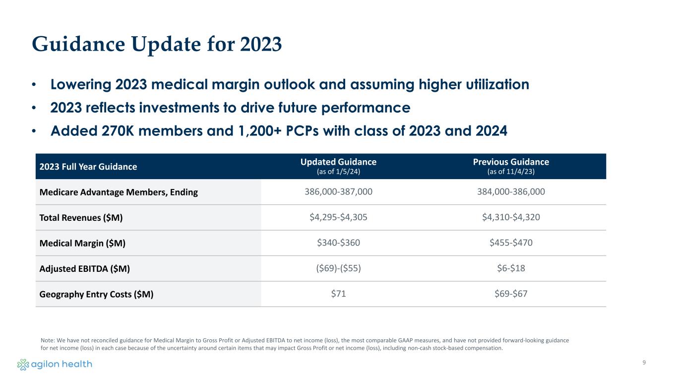 Guidance Update January 2024 Copyright © 2023 agilon health. Confidential internal document containing proprietary information. Do not distribute.