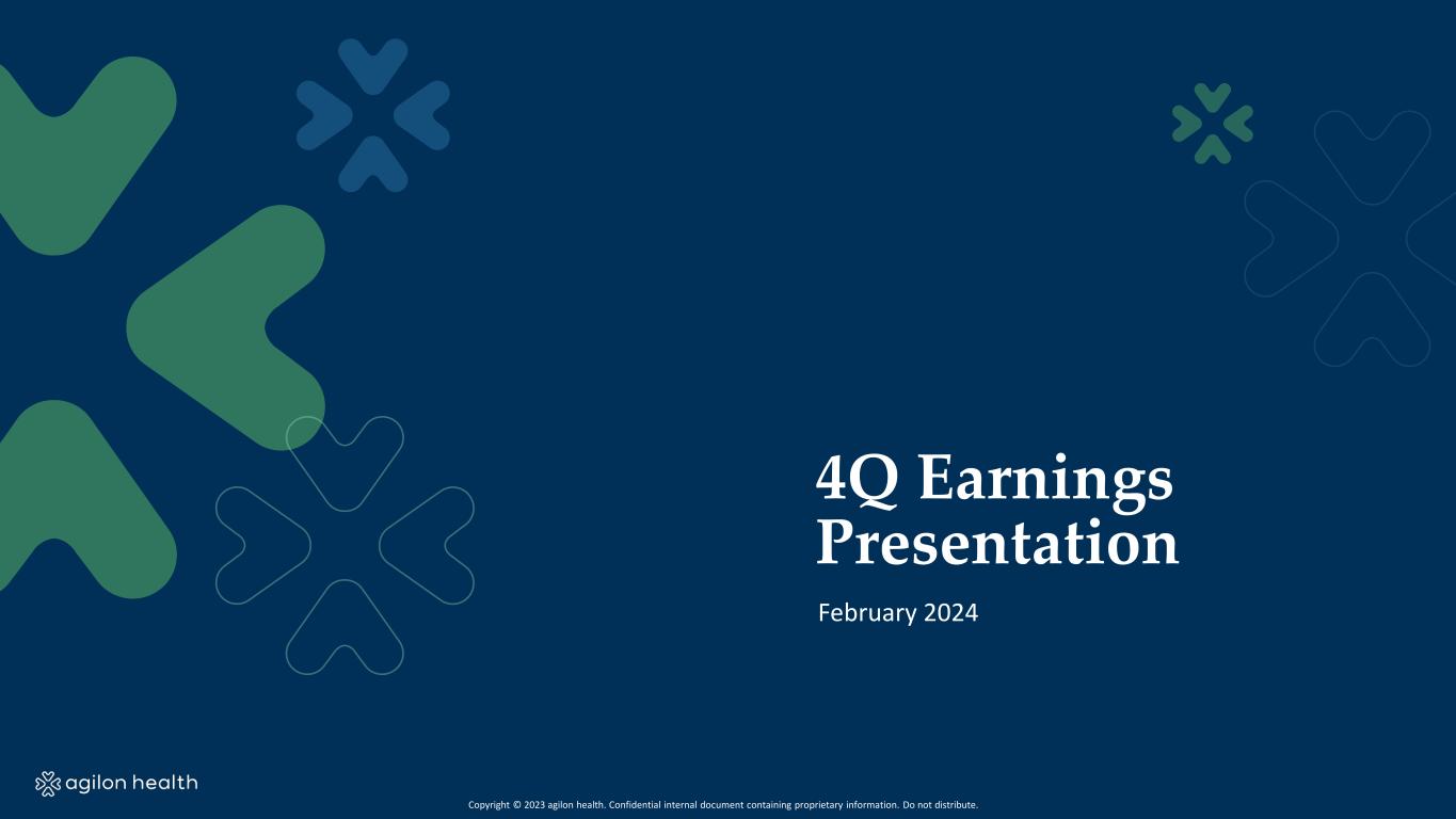 4Q Earnings Presentation February 2024 Copyright © 2023 agilon health. Confidential internal document containing proprietary information. Do not distribute.