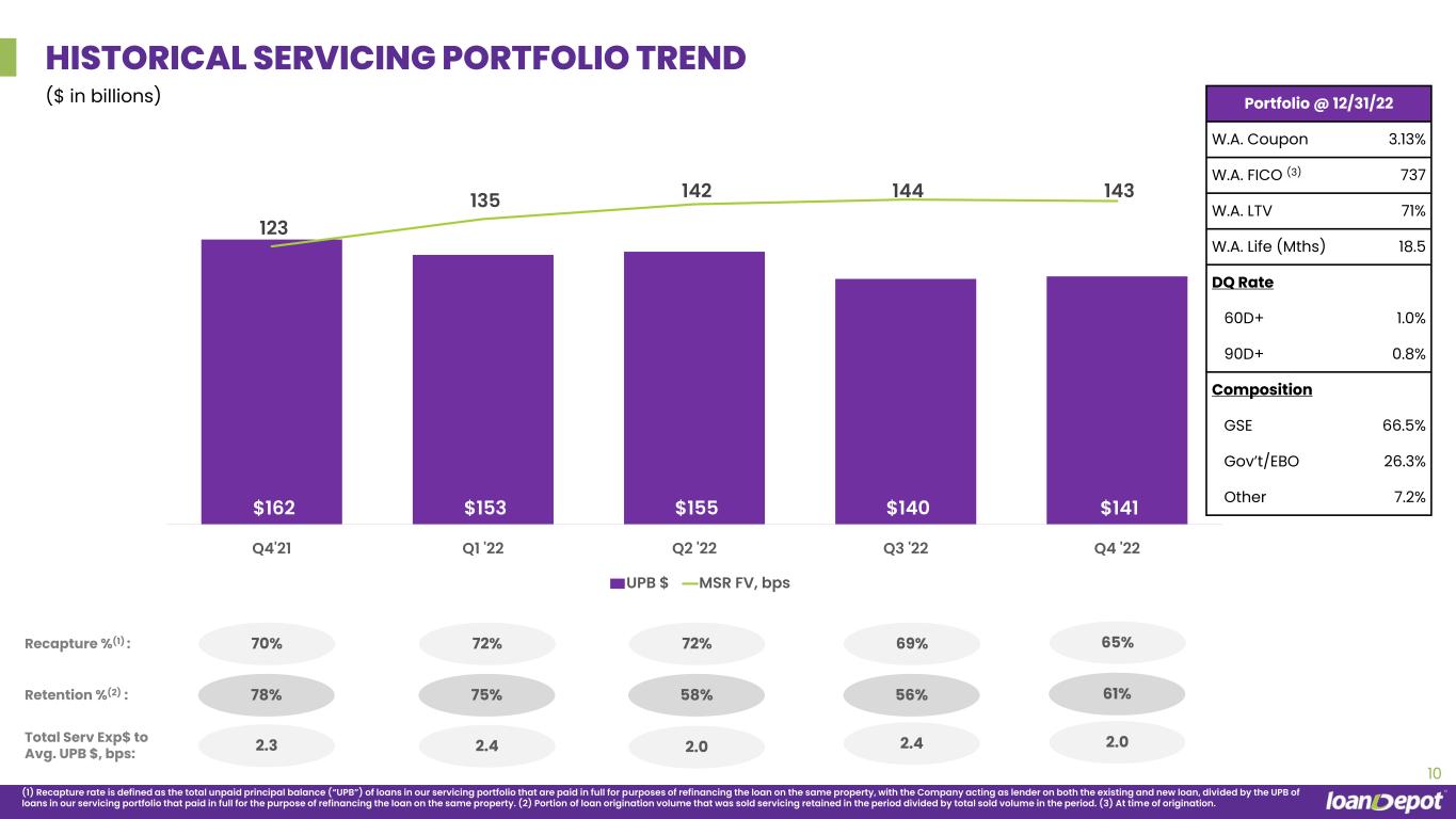 ACHIEVED VISION 2025 EXPENSE SAVINGS TARGET 9 ($MM) 4Q ’22 3Q ‘22 2Q ’22 4Q vs. 2Q Notes Revenue $169.7 $274.2 $308.6 ($139.0) Expenses Personnel $165.6 $218.8 $296.6 ($130.9) 1,2 Marketing and Advertising 31.5 42.9 60.8 (29.3) 3 Direct Origination Expense 14.2 19.5 34.0 (19.8) 4 Other General & Administrative Expense 68.6 83.4 63.9 4.7 Occupancy 6.6 9.9 9.4 (2.8) Depreciation & Amortization 10.1 10.2 11.3 (1.2) Servicing Expense 6.6 14.2 10.7 (4.1) Other Interest Expense 40.4 36.1 33.1 7.3 Goodwill & Other Impairment - - 40.7 (40.7) Total Expenses $343.7 $435.1 $560.7 ($216.9) (Loss) Income Before Taxes ($174.1) ($160.9) ($252.0) $77.9 Vision 2025 Related Expenses Personnel Related 3.2 8.6 3.5 ($0.3) Vision 2025 Related Professional Services Fees 2.5 7.0 2.7 (0.2) Lease & and Other Asset Impairment 6.3 20.8 6.0 0.3 Goodwill Impairment 0.0 0.0 40.7 (40.7) Total Vision 2025 Expenses $11.9 $36.4 $54.6 ($43.5) Notes: Non-Volume Related: 1. Approximately $63.6 million reduction due to headcount decreasing from 8,500 to 5,200 between Q2 and Q4 3. Marketing reduction resulting from smaller mortgage market, seasonality and fewer customer conversions Total non-volume related expenses - $129.8 million, or $519.3 million annualized Volume Related: 2. Approximately $67.3 million reduction in commissions 4. Reduction in direct origination expenses due to lower volume Total volume related expenses - $87.1 million