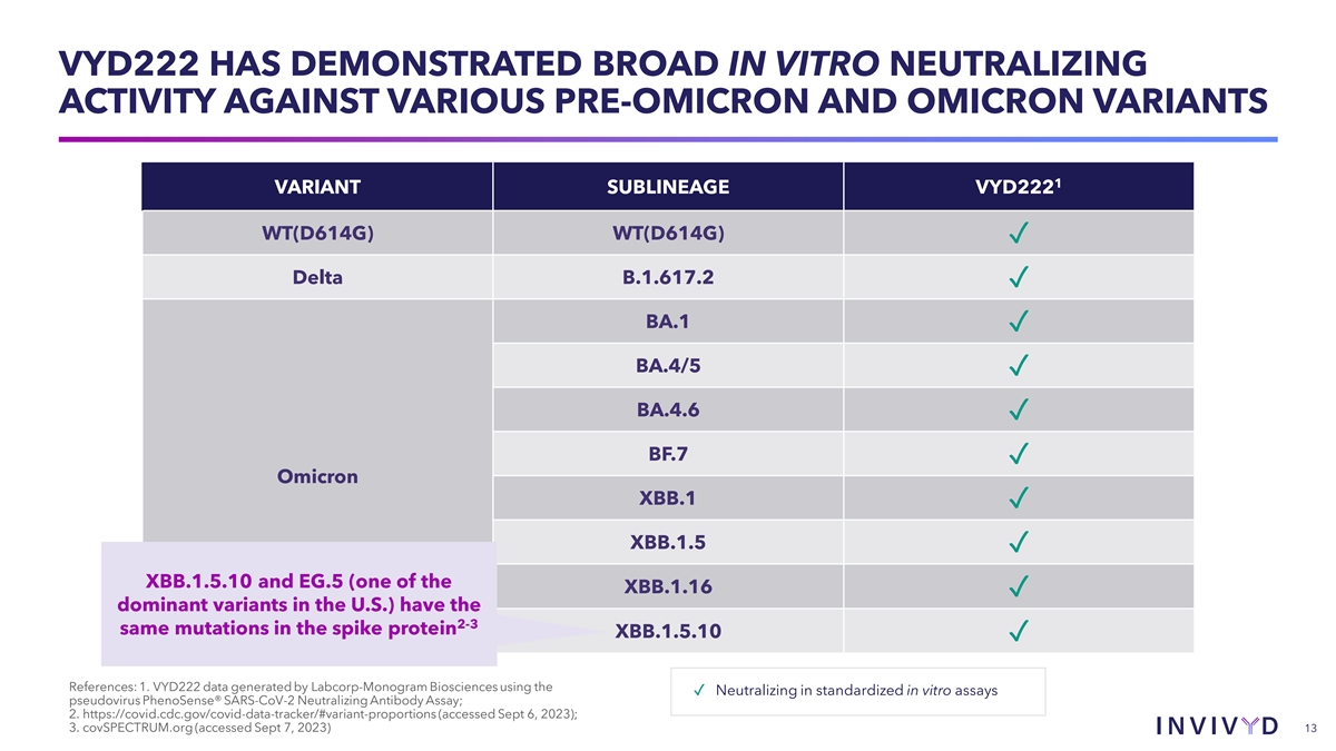 Our Platform & VYD222 © 2023 Invivyd, Inc. Invivyd and the Invivyd logo are trademarks of Invivyd, Inc. All trademarks in this presentation are the property of their respective owners.