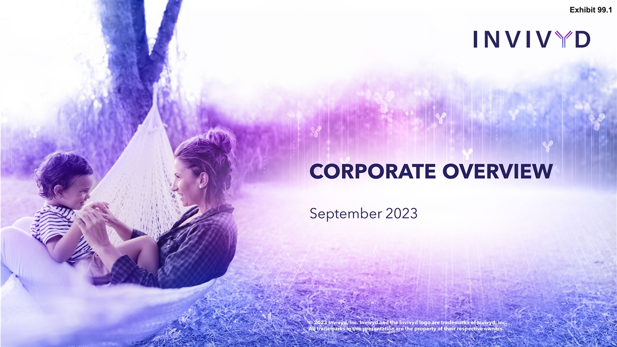 Exhibit 99.1 CORPORATE OVERVIEW September 2023 © 2023 Invivyd, Inc. Invivyd and the Invivyd logo are trademarks of Invivyd, Inc. All trademarks in this presentation are the property of their respective owners.