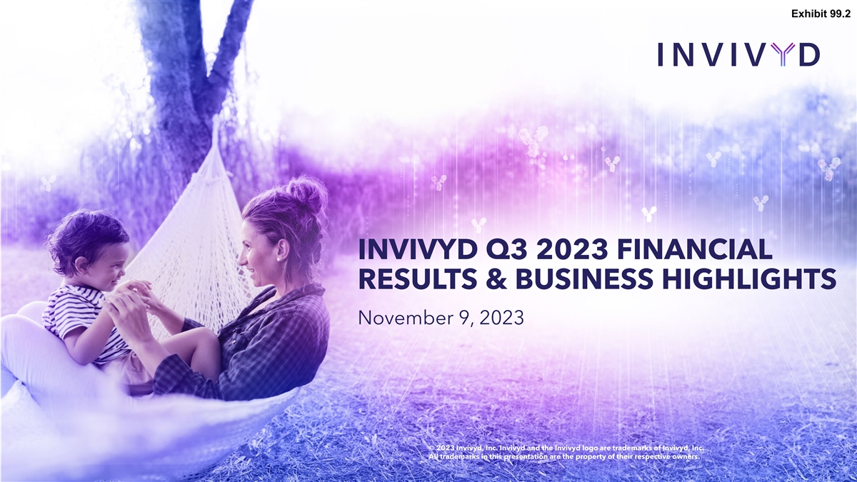 Exhibit 99.2 INVIVYD Q3 2023 FINANCIAL RESULTS & BUSINESS HIGHLIGHTS November 9, 2023 © 2023 Invivyd, Inc. Invivyd and the Invivyd logo are trademarks of Invivyd, Inc. All trademarks in this presentation are the property of their respective owners.