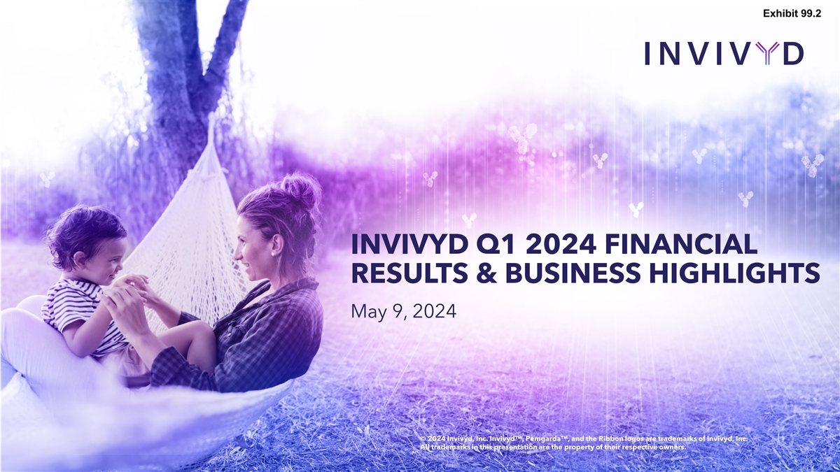 Exhibit 99.2 INVIVYD Q1 2024 FINANCIAL RESULTS & BUSINESS HIGHLIGHTS May 9, 2024 © 2024 Invivyd, Inc. Invivyd , Pemgarda , and the Ribbon logos are trademarks of Invivyd, Inc. All trademarks in this presentation are the property of their respective owners.
