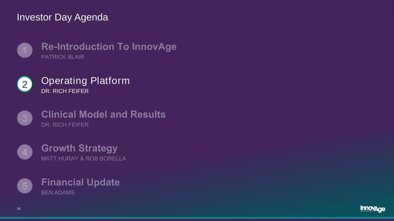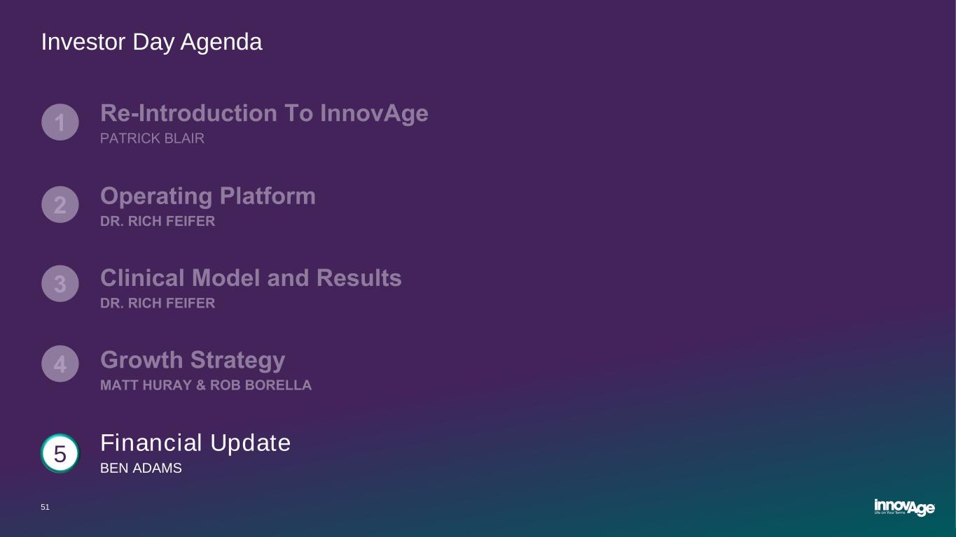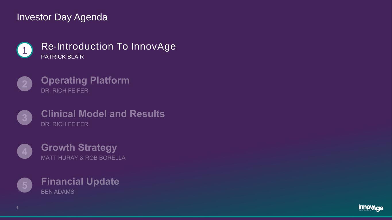 Investor Day Agenda 3 1 Re-Introduction To InnovAge PATRICK BLAIR