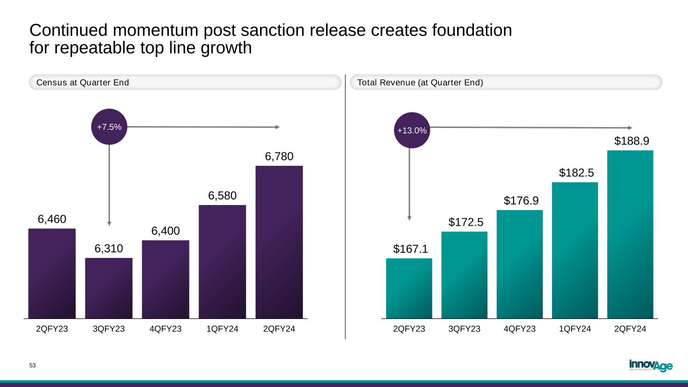 Continued momentum post sanction release creates foundation for repeatable top line growth 53 6,460 6,310 6,400 6,580 6,780 2QFY23 3QFY23 4QFY23 1QFY24 2QFY24 $167.1 $172.5 $176.9 $182.5 $188.9 2QFY23 3QFY23 4QFY23 1QFY24 2QFY24 Total Revenue (at Quarter End)Census at Quarter End +13.0%+7.5%