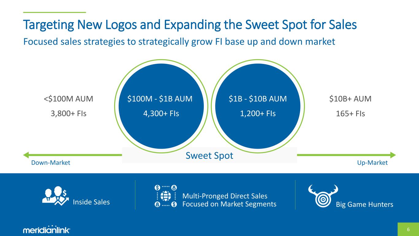 © 2023 MERIDIANLINK, INC. ALL RIGHTS RESERVED. 5 Large TAM with Significant Runway LEVEL 01 LEVEL 02 LEVEL 03 LEVEL 04 LEVEL 05 ~$10B Total Addressable Market MeridianLink serves nearly the entire consumer lending wallet with significant opportunity to expand across the entire addressable market Loan Origination(1) Portfolio & Lending Performance Account Opening & Point-of-Sale Collections Data Access: Consumer Data & CRA Enablement Source: Cornerstone Advisors. (1) Loan origination market size is inclusive of consumer, mortgage, and commercial loan origination.