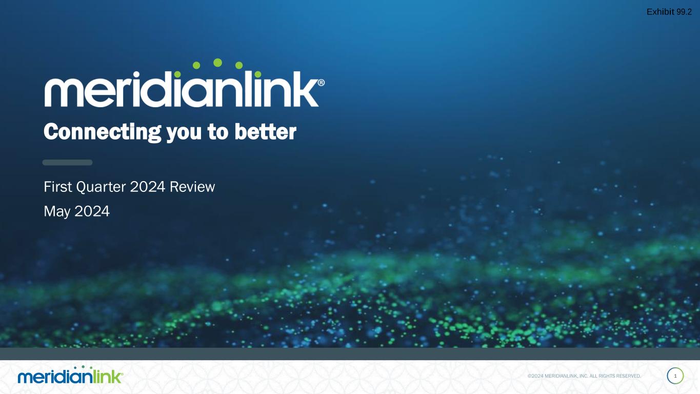 ©2024 MERIDIANLINK, INC. ALL RIGHTS RESERVED. 1 Connecting you to better First Quarter 2024 Review May 2024 Exhibit 99.2