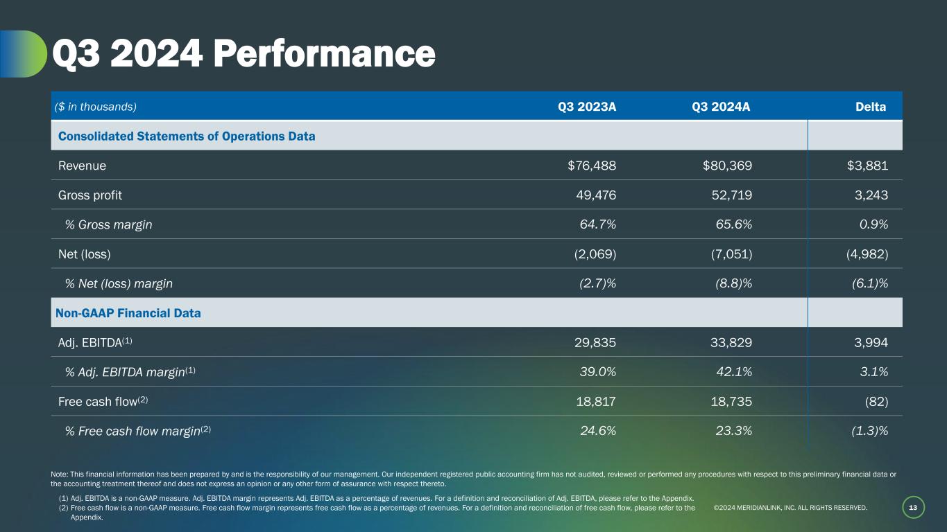 ©2024 MERIDIANLINK, INC. ALL RIGHTS RESERVED. Third Quarter 2024 Results November 2024 Exhibit 99.2