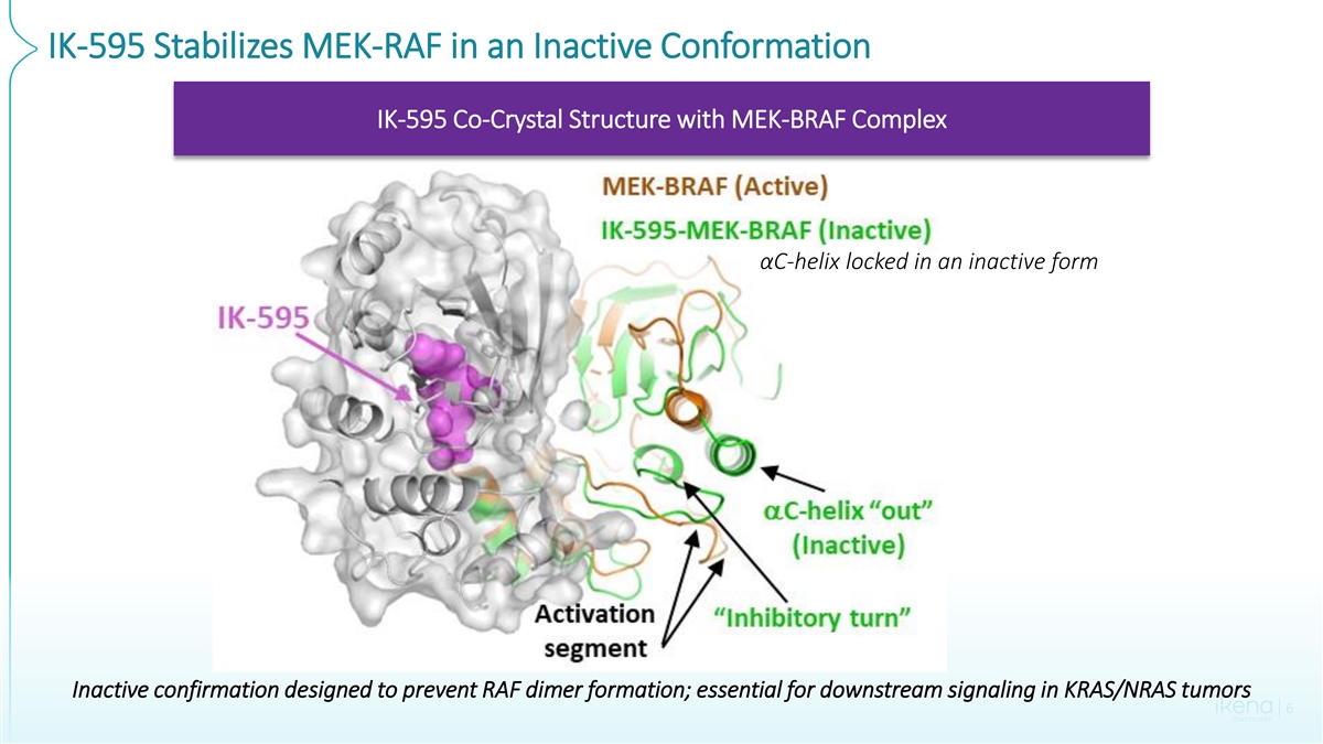 IK-595 Stabilizes MEK-RAF in an Inactive Conformation IK-595 Co-Crystal Structure with MEK-BRAF Complex αC-helix locked in an inactive form Inactive confirmation designed to prevent RAF dimer formation; essential for downstream signaling in KRAS/NRAS tumors Confidential 6 6