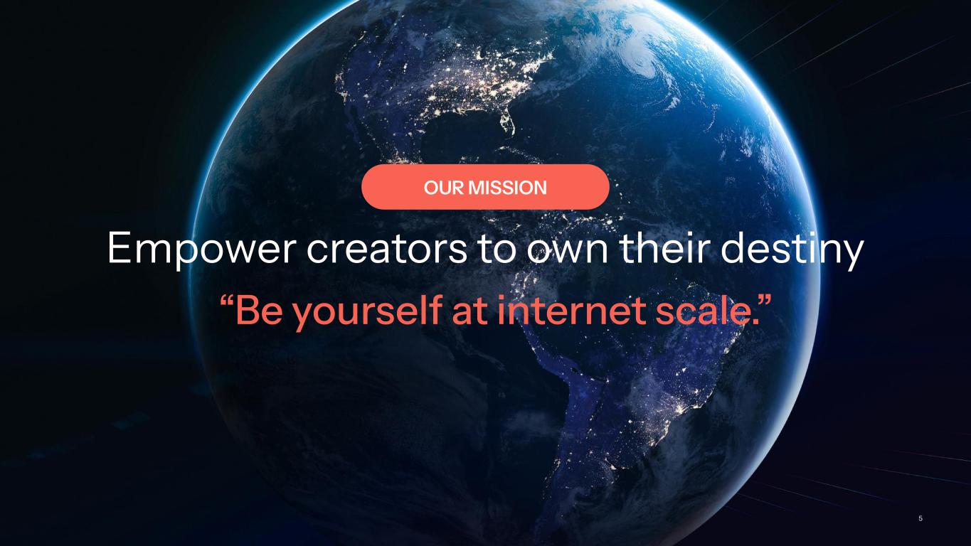 5 OUR MISSION Empower creators to own their destiny “Be yourself at internet scale.”