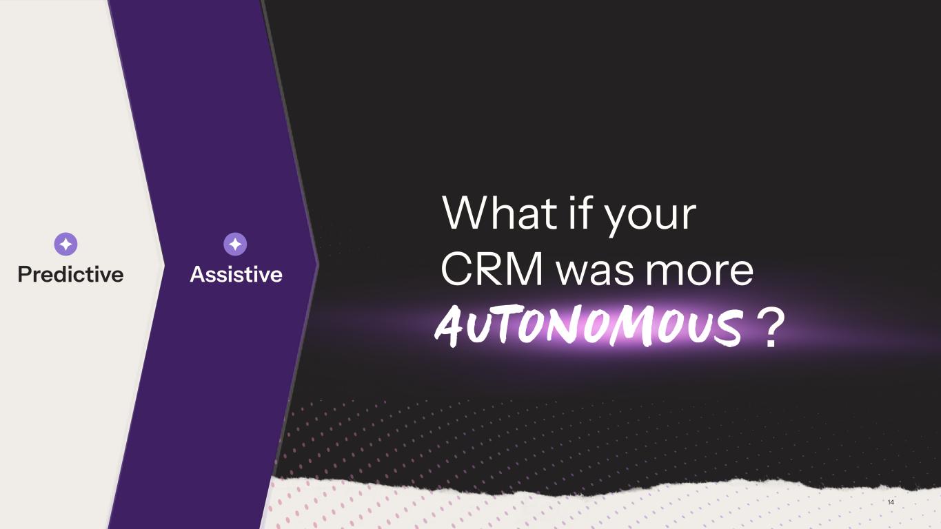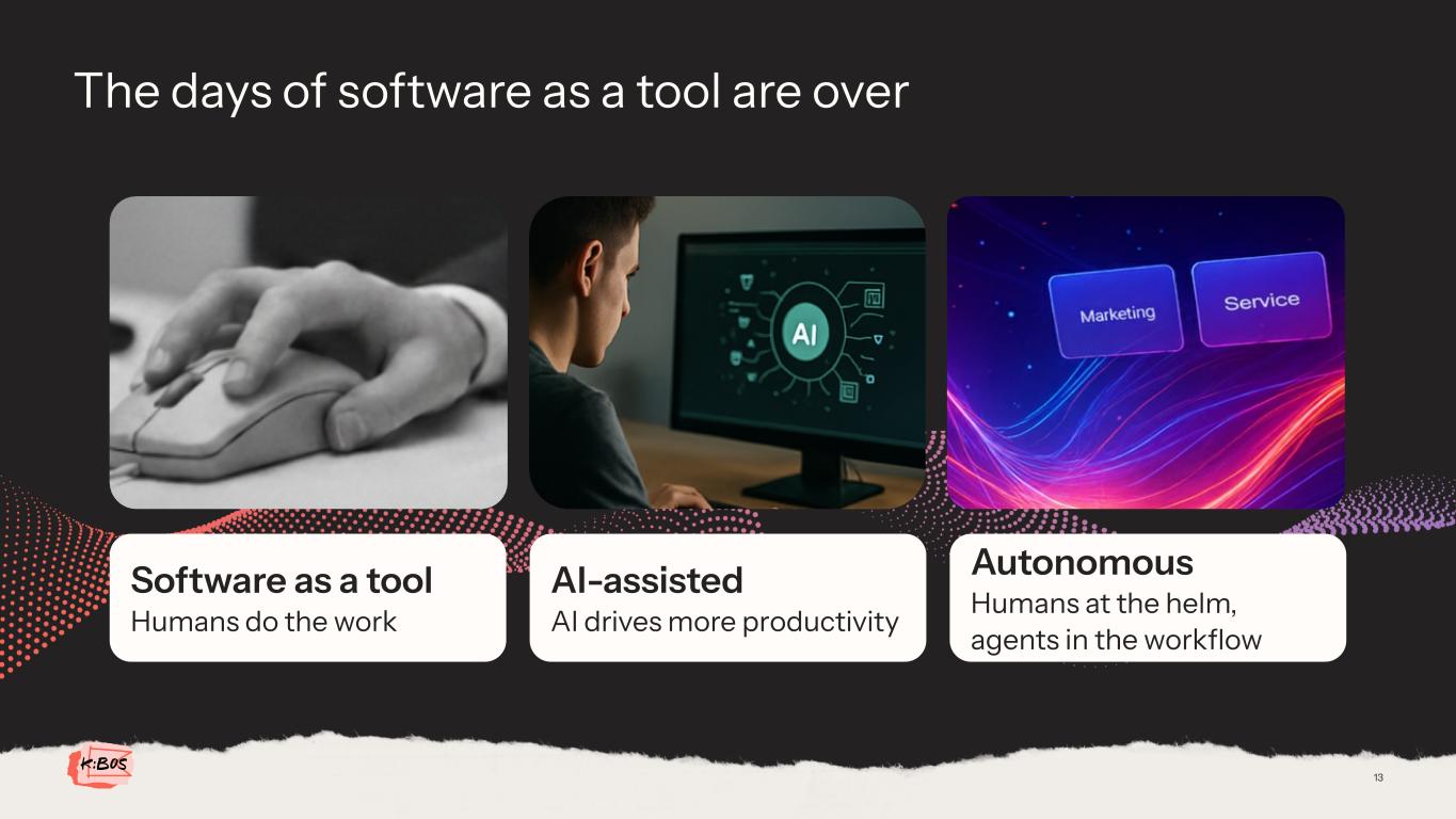 13 The days of software as a tool are over Software as a tool Humans do the work AI-assisted AI drives more productivity Autonomous Humans at the helm, agents in the workflow