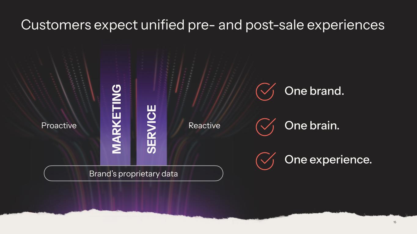 Title Text One brain. One experience. One brand. Brand’s proprietary data Proactive Reactive M A R K ET IN G S ER V IC E Customers expect unified pre- and post-sale experiences 15