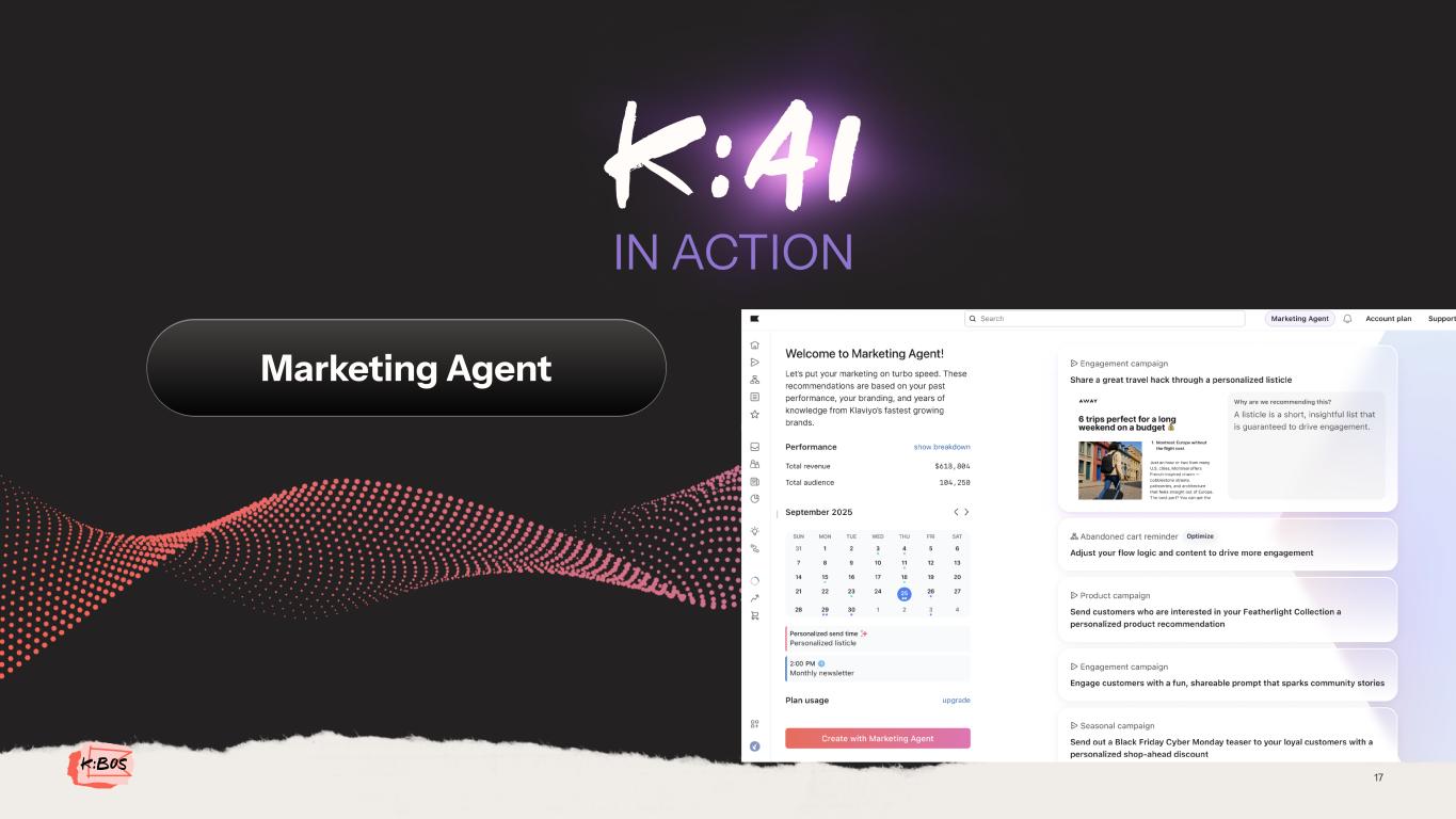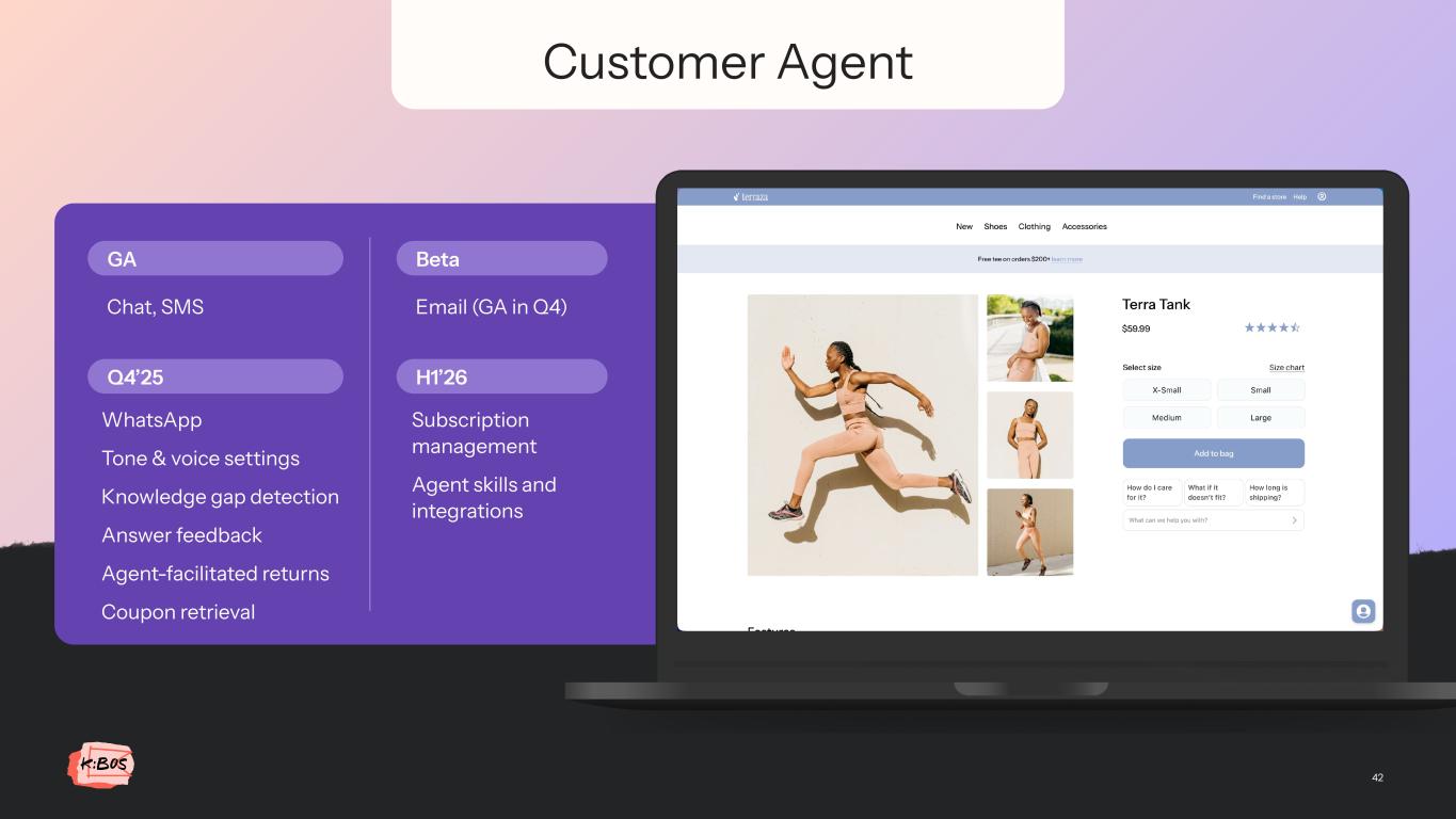 2025 © Klaviyo 41 Autonomous conversations AI that guides, assists, and resolves 24/7 - on any channel - powered by shared data Personalized on- site self service Empower shoppers with easy order management, returns, and dynamic offers all in one place Smarter tools for support teams Give agents context and automations to resolve faster and identify new revenue opportunities