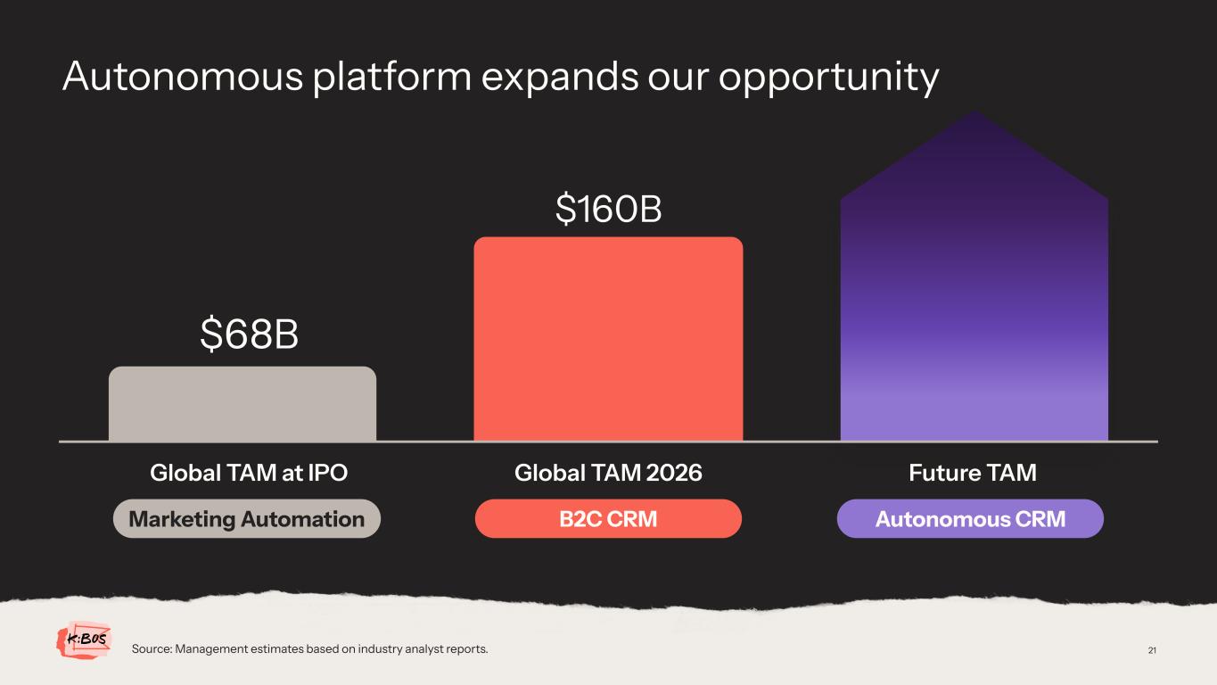 21 $68B Global TAM at IPO Autonomous platform expands our opportunity Global TAM 2026 Future TAM $160B Source: Management estimates based on industry analyst reports. Marketing Automation B2C CRM Autonomous CRM