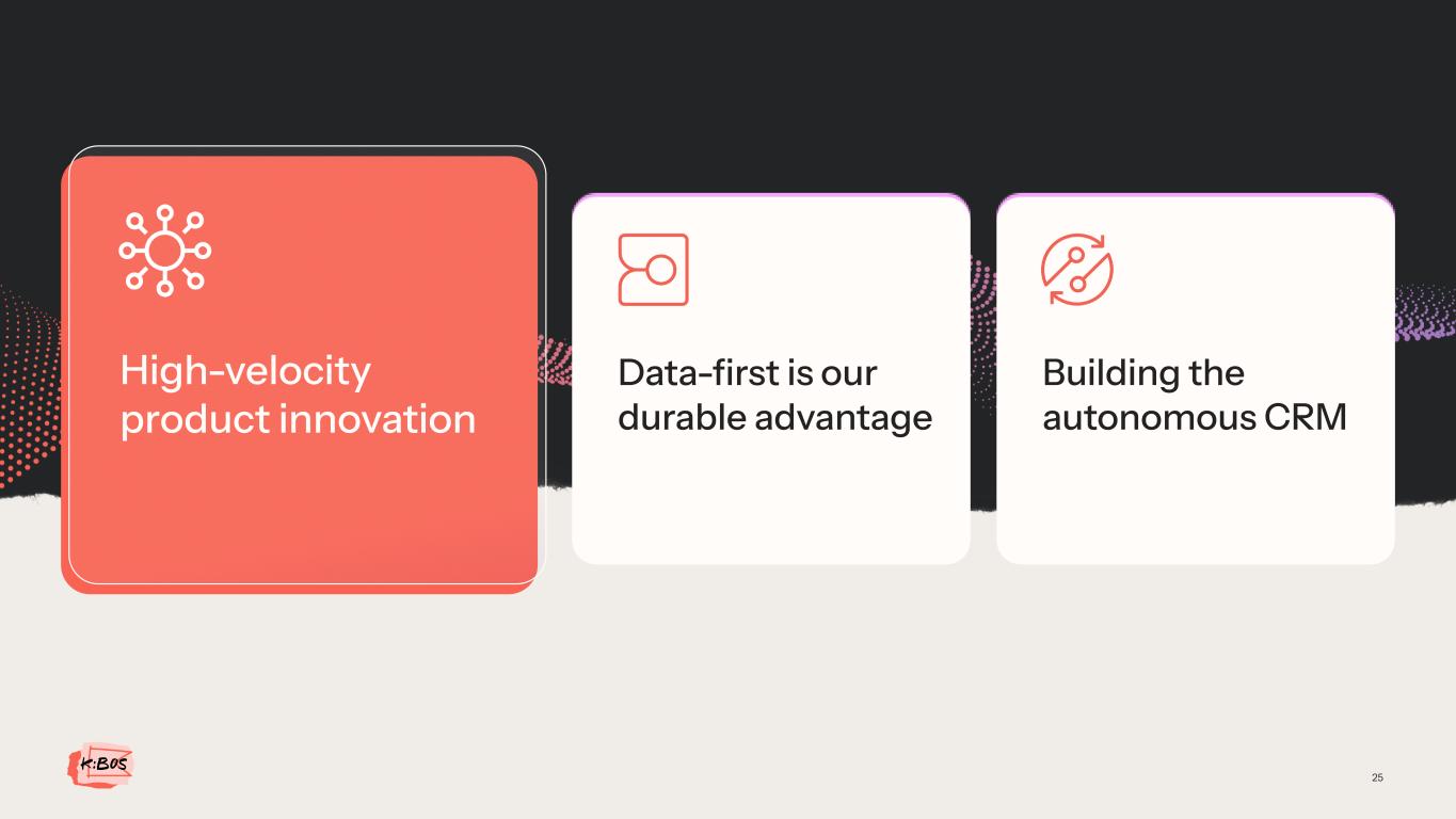 24 Building the autonomous CRM Data-first is our durable advantage High-velocity product innovation