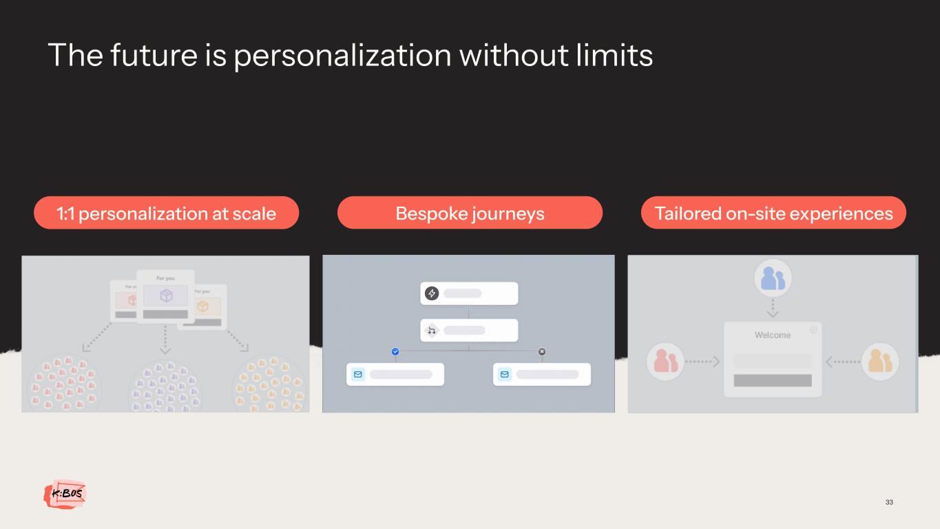 32 1:1 personalization at scale Tailored on-site experiencesBespoke journeys The future is personalization without limits