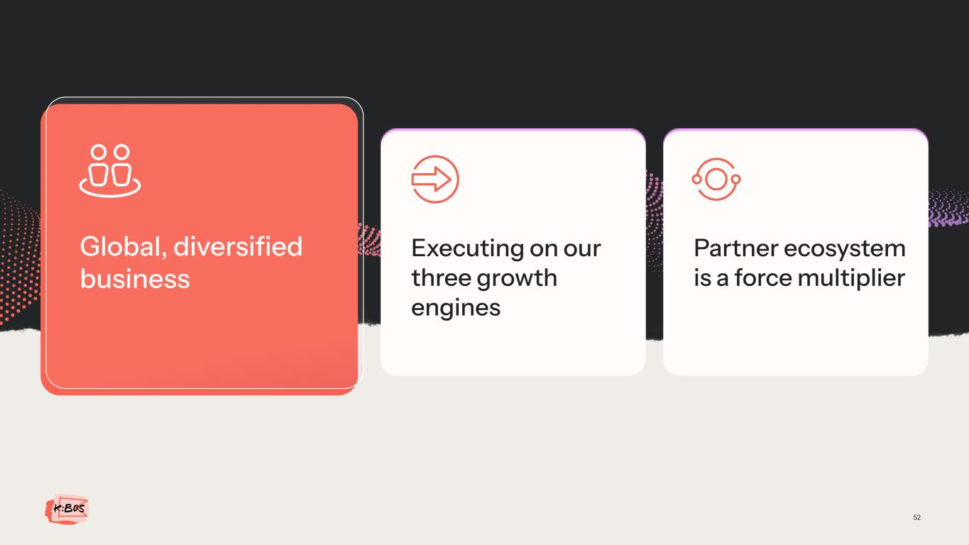 51 Partner ecosystem is a force multiplier Executing on our three growth engines Global, diversified business