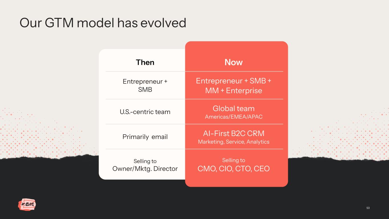 2025 © Klaviyo Our GTM model has evolved 53 Then Now Entrepreneur + SMB Entrepreneur + SMB + MM + Enterprise U.S.-centric team Global team Americas/EMEA/APAC Primarily email AI-First B2C CRM Marketing, Service, Analytics Selling to Owner/Mktg. Director Selling to CMO, CIO, CTO, CEO