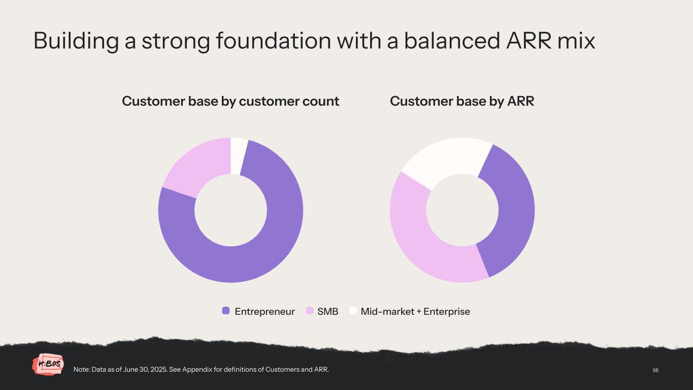 56 Building a strong foundation with a balanced ARR mix Customer base by customer count Customer base by ARR SMBEntrepreneur Mid-market + Enterprise Note: Data as of June 30, 2025. See Appendix for definitions of Customers and ARR.