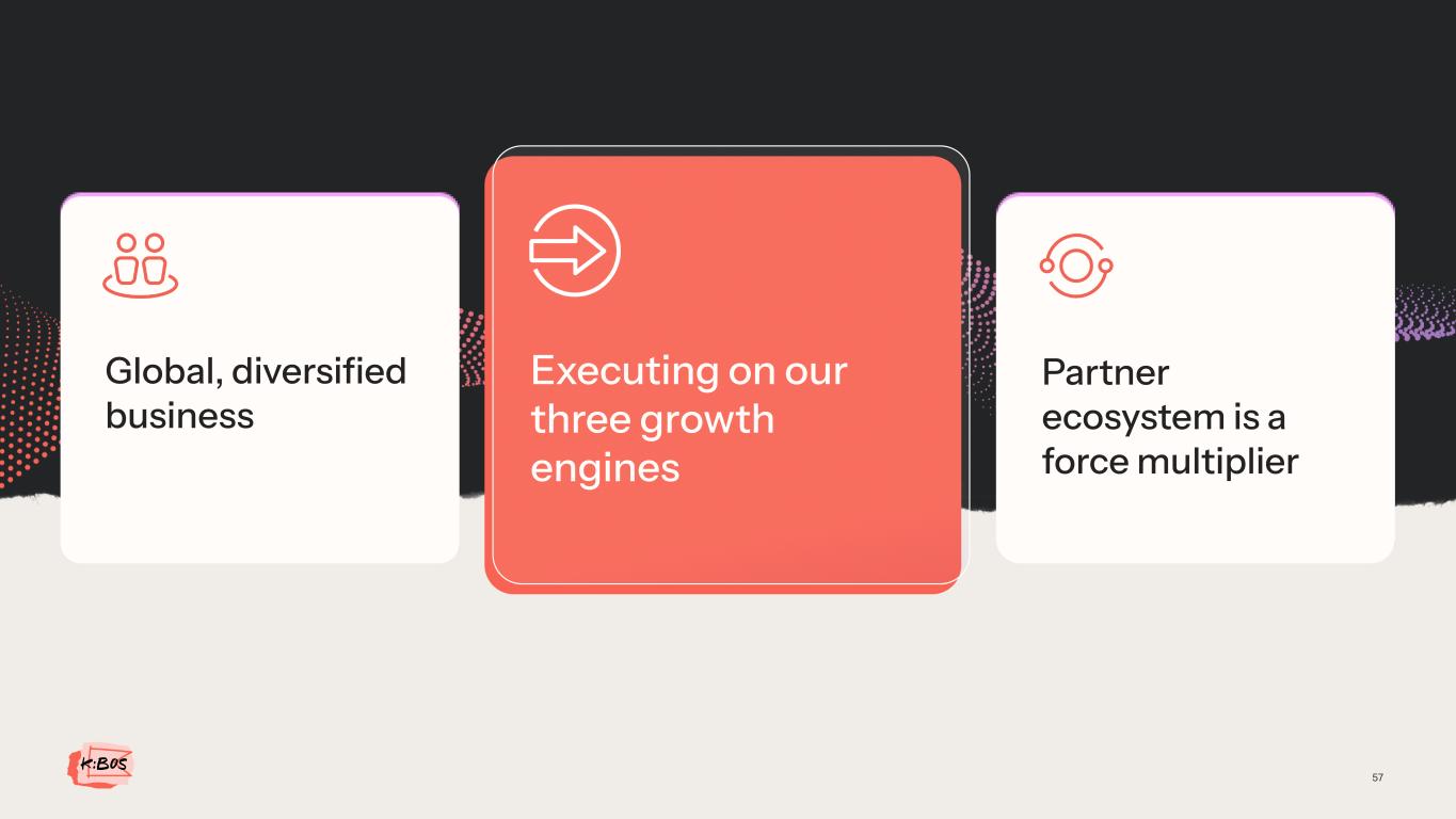 57 Partner ecosystem is a force multiplier Global, diversified business Executing on our three growth engines