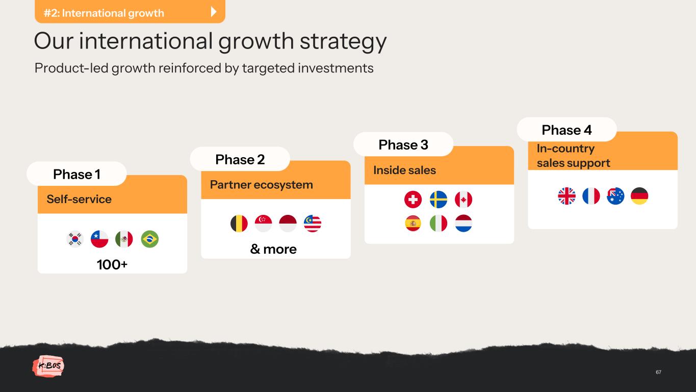 67 Our international growth strategy Self-service Phase 1 Partner ecosystem Phase 2 Inside sales Phase 3 In-country sales support Phase 4 Product-led growth reinforced by targeted investments #2: International growth 100+ & more