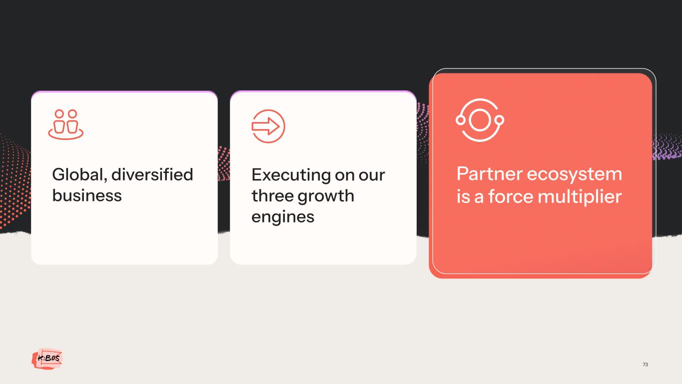 73 Partner ecosystem is a force multiplier Global, diversified business Executing on our three growth engines