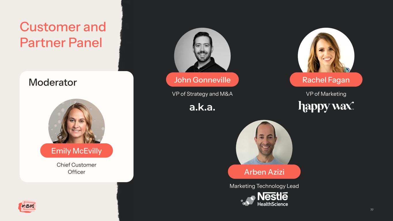 77 Customer and Partner Panel Chief Customer Officer Emily McEvilly Moderator VP of Marketing Rachel Fagan Marketing Technology Lead Arben Azizi VP of Strategy and M&A John Gonneville