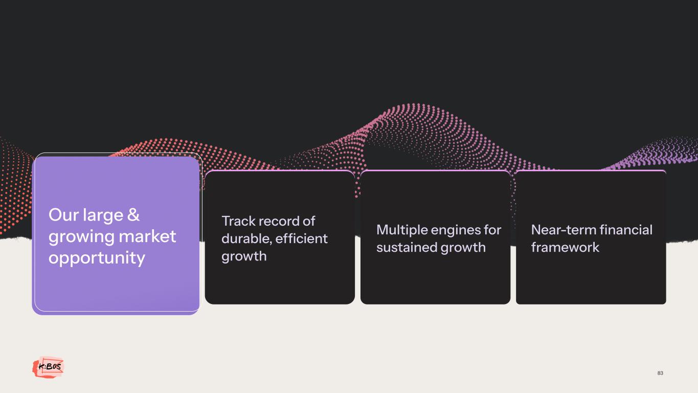 82 Multiple engines for sustained growth Near-term financial framework Track record of durable, efficient growth Our large & growing market opportunity