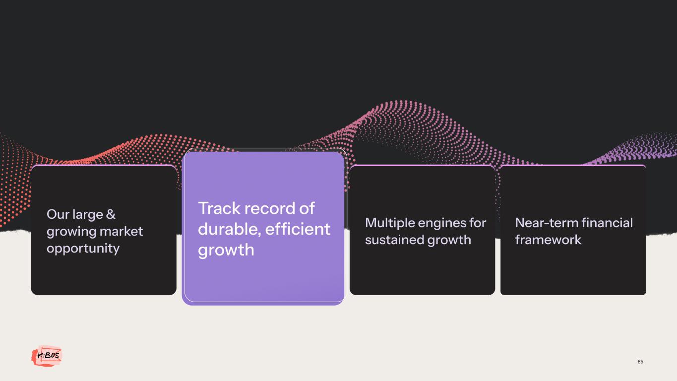 85 Our large & growing market opportunity Multiple engines for sustained growth Near-term financial framework Track record of durable, efficient growth