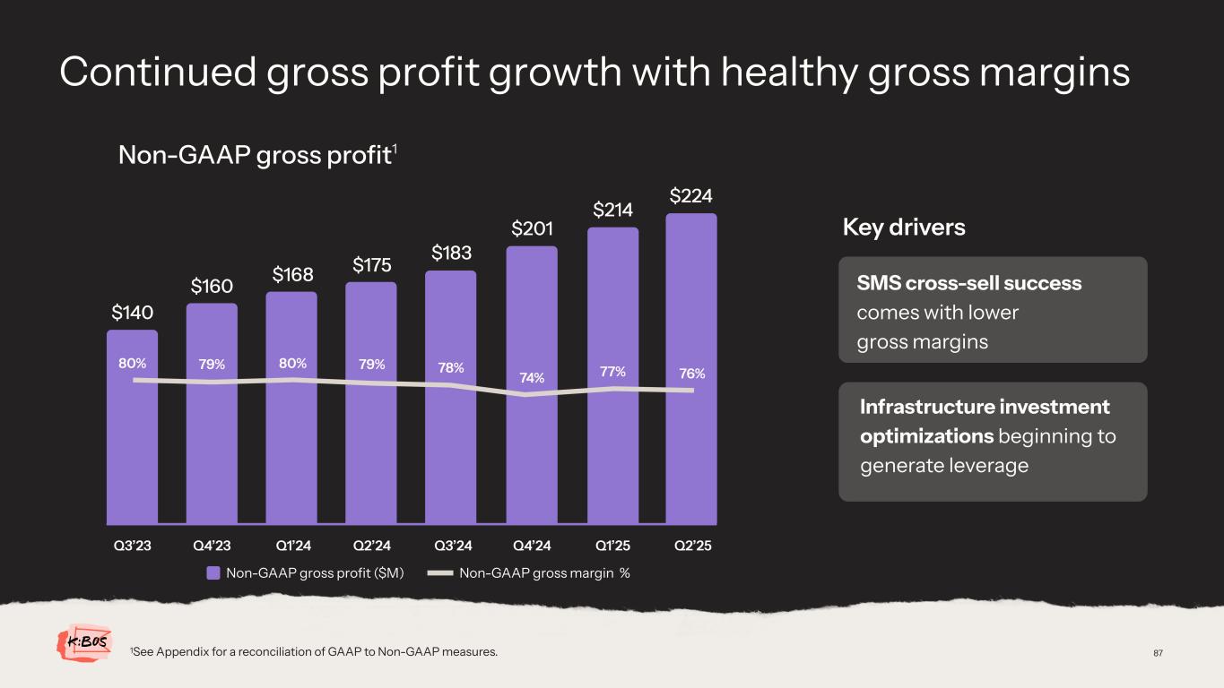 87 Continued gross profit growth with healthy gross margins Q3’23 Q4’23 Q1’24 Q2’24 Q3’24 Q4’24 Q1’25 Q2’25 $140 $160 $168 $175 $183 $201 $214 $224 48% 39% 35% 35% 34% 34% 33% 32% 80% 79% 80% 79% 78% 74% 77% 76% Key drivers SMS cross-sell success comes with lower gross margins Infrastructure investment optimizations beginning to generate leverage 1See Appendix for a reconciliation of GAAP to Non-GAAP measures. Non-GAAP gross margin %Non-GAAP gross profit ($M) Non-GAAP gross profit1