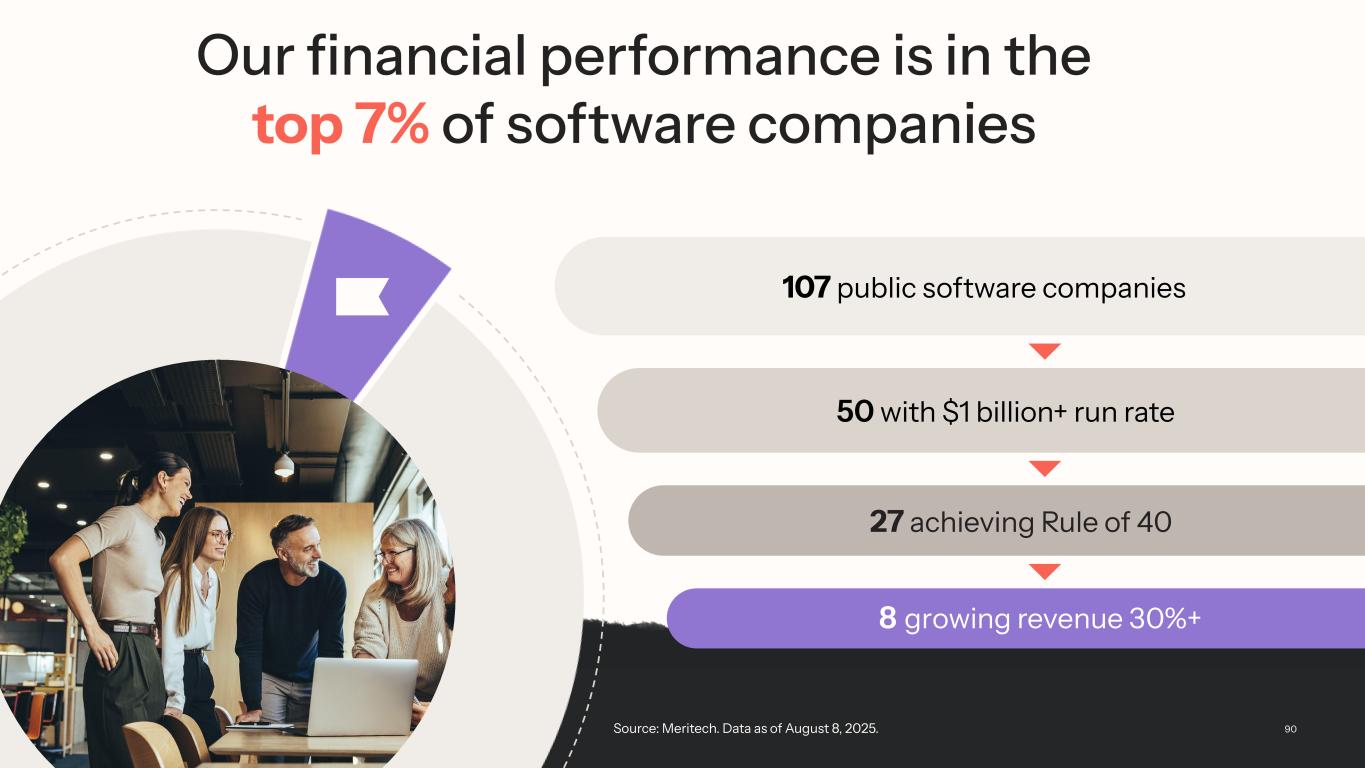 2025 © Klaviyo Our financial performance is in the top 7% of software companies 90 107 public software companies 50 with $1 billion+ run rate 27 achieving Rule of 40 8 growing revenue 30%+ Source: Meritech. Data as of August 8, 2025.