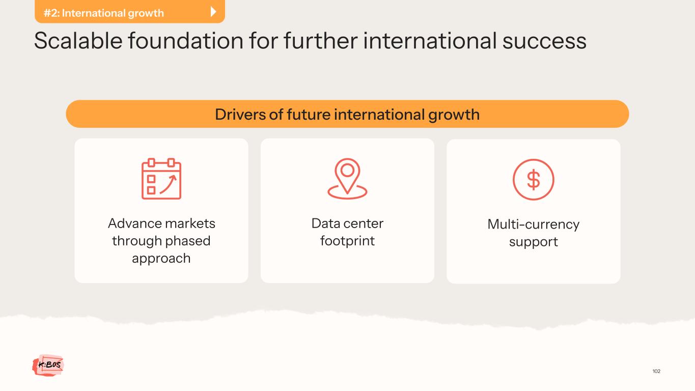 102 Scalable foundation for further international success Advance markets through phased approach #2: International growth Multi-currency support Drivers of future international growth Data center footprint