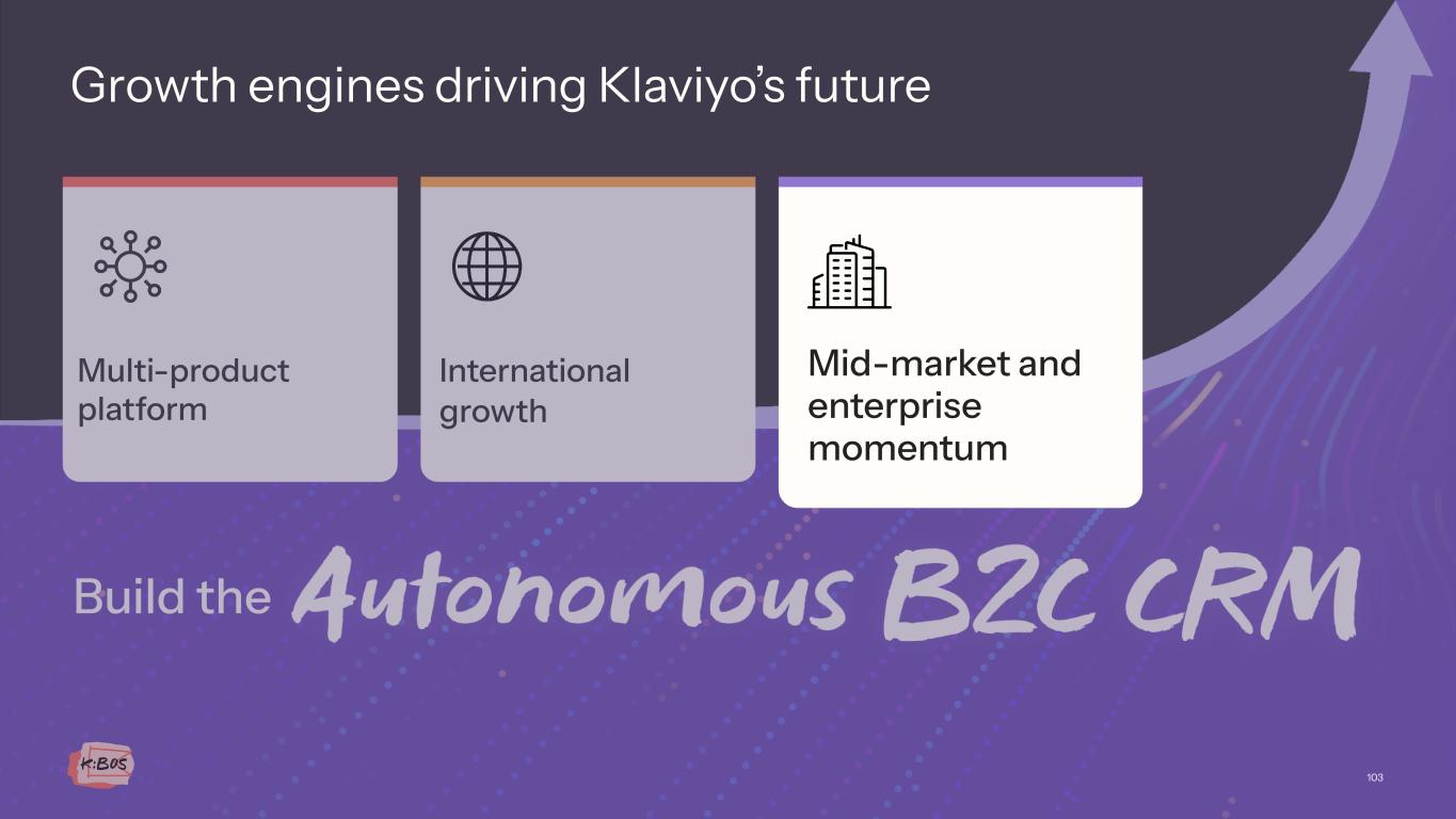 Multi-product platform Build the International growth Mid-market and enterprise momentum 103 Growth engines driving Klaviyo’s future