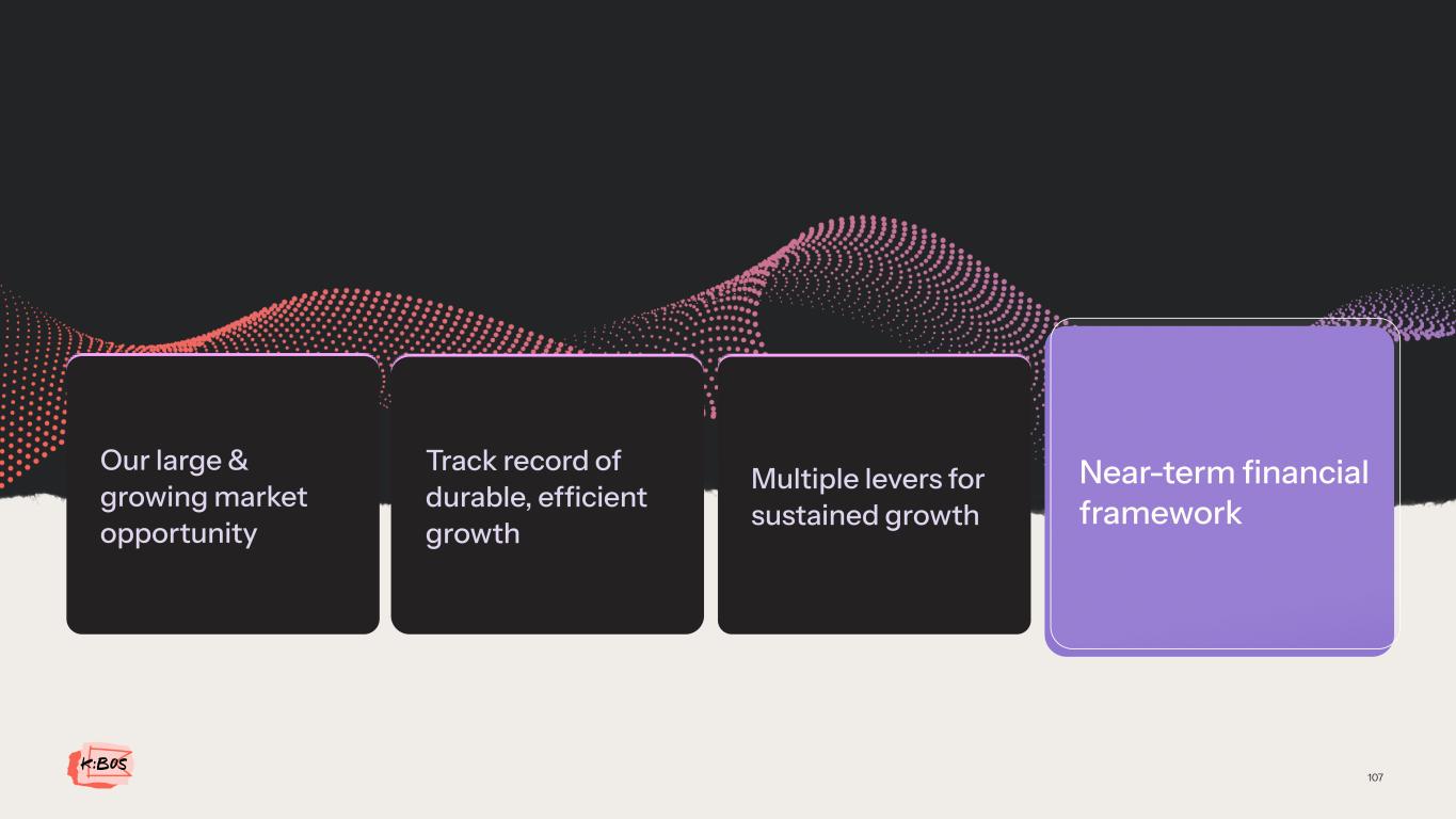 107 Near-term financial framework Our large & growing market opportunity Track record of durable, efficient growth Multiple levers for sustained growth