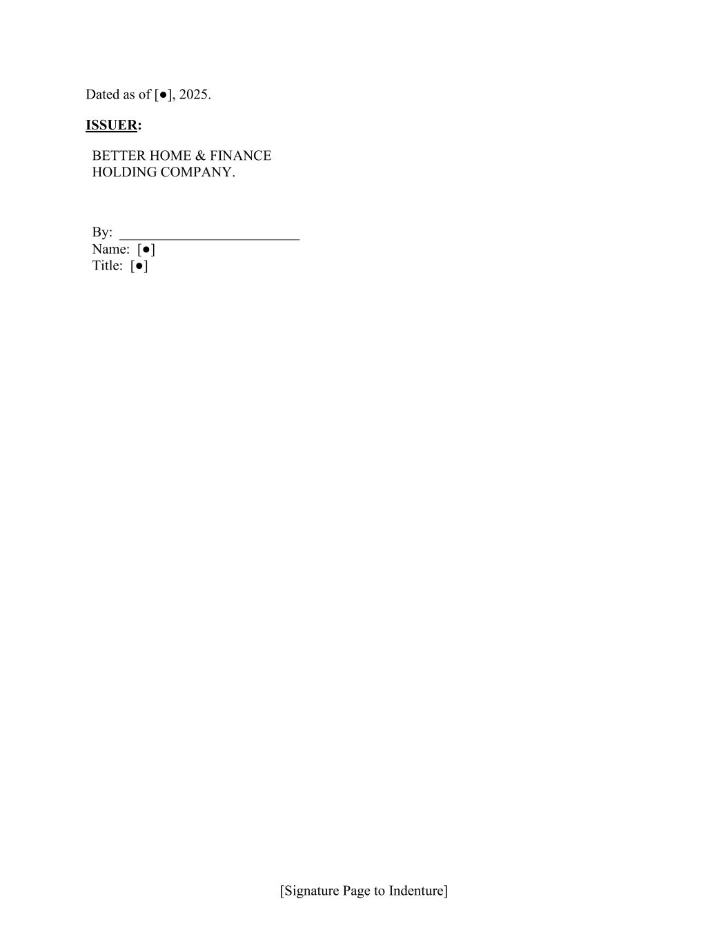 [Signature Page to Indenture] Dated as of [●], 2025. ISSUER: BETTER HOME & FINANCE HOLDING COMPANY. By: Name: [●] Title: [●]