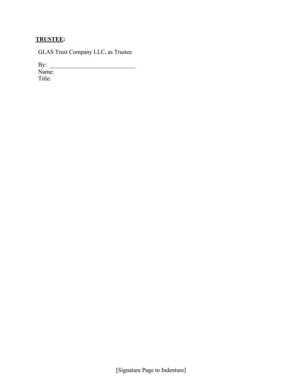 [Signature Page to Indenture] TRUSTEE: GLAS Trust Company LLC, as Trustee By: Name: Title: