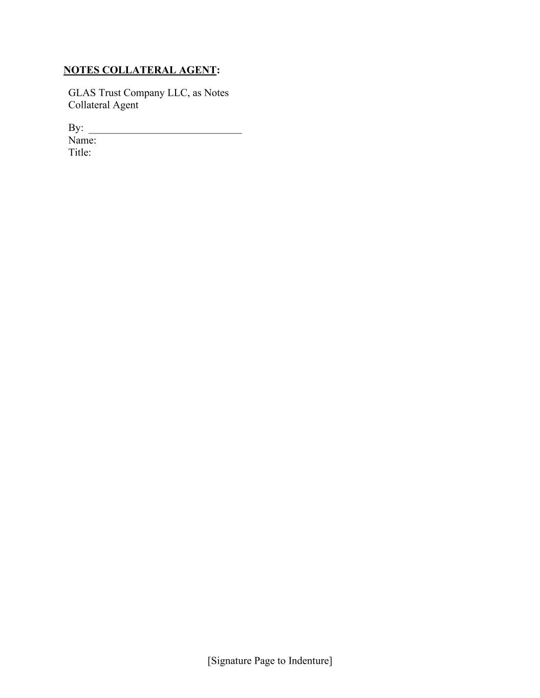 [Signature Page to Indenture] NOTES COLLATERAL AGENT: GLAS Trust Company LLC, as Notes Collateral Agent By: Name: Title: