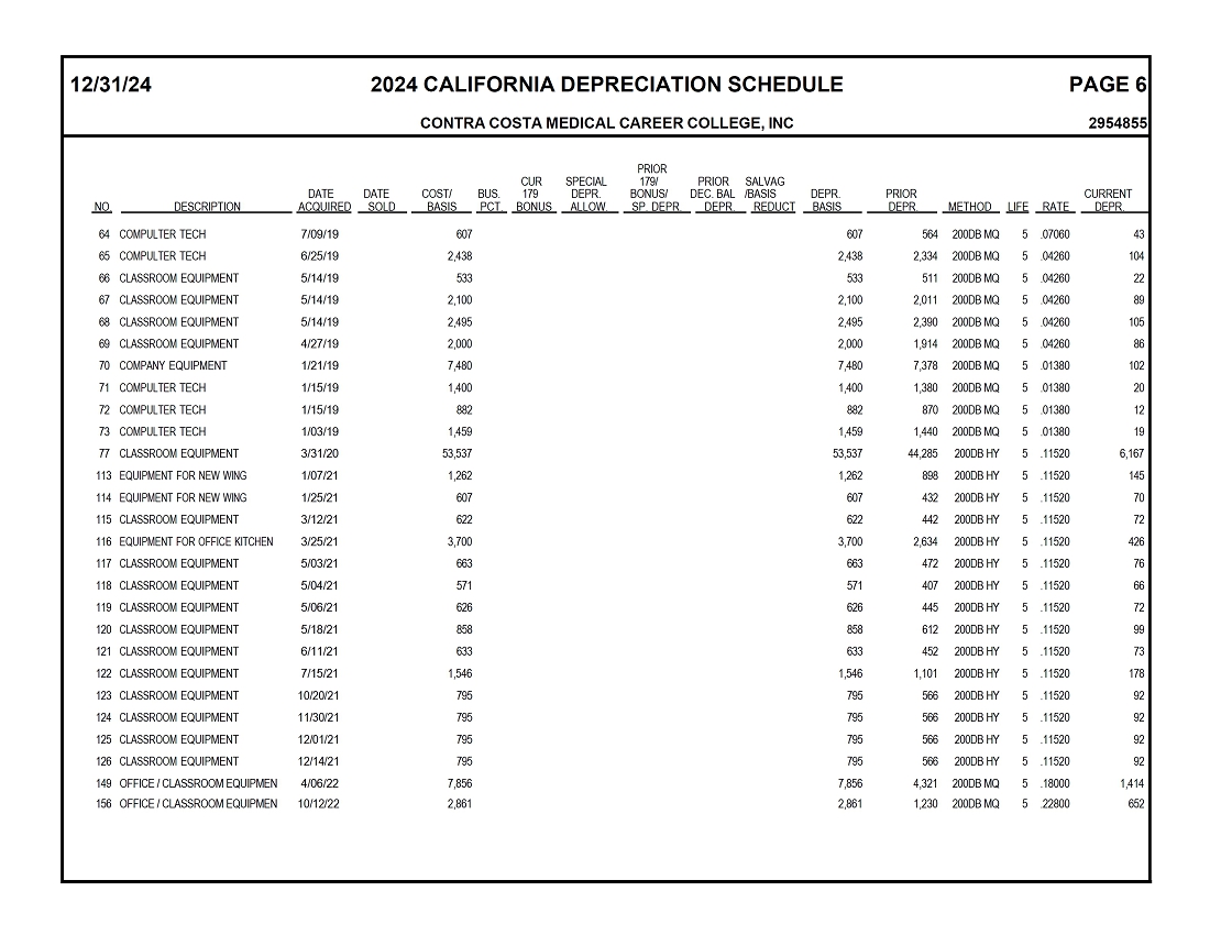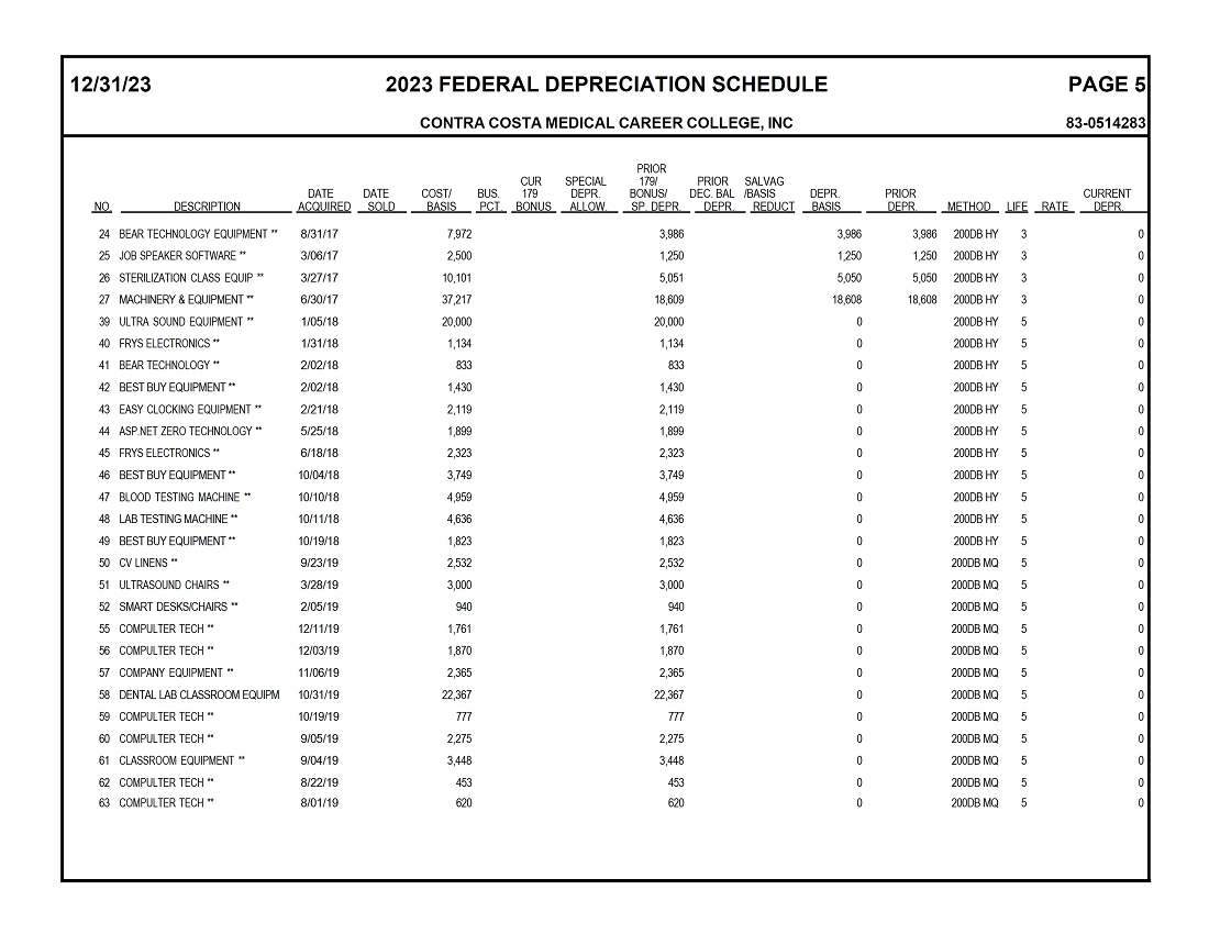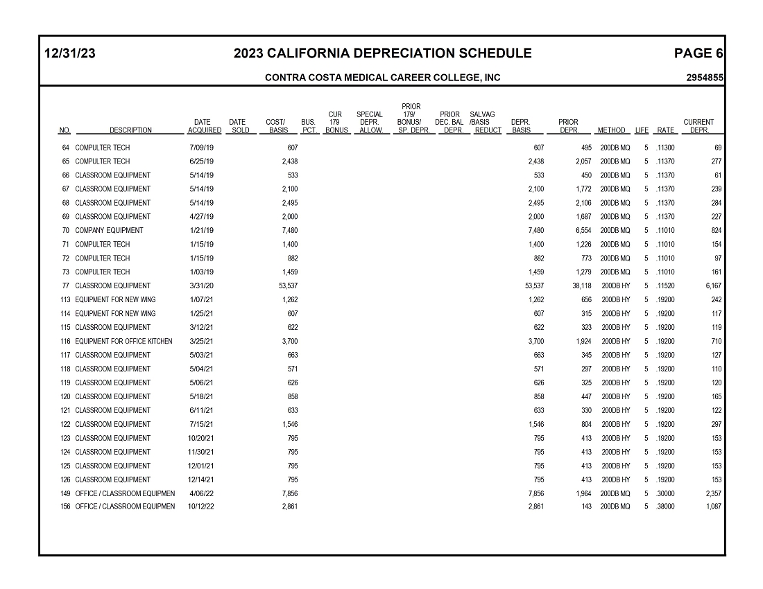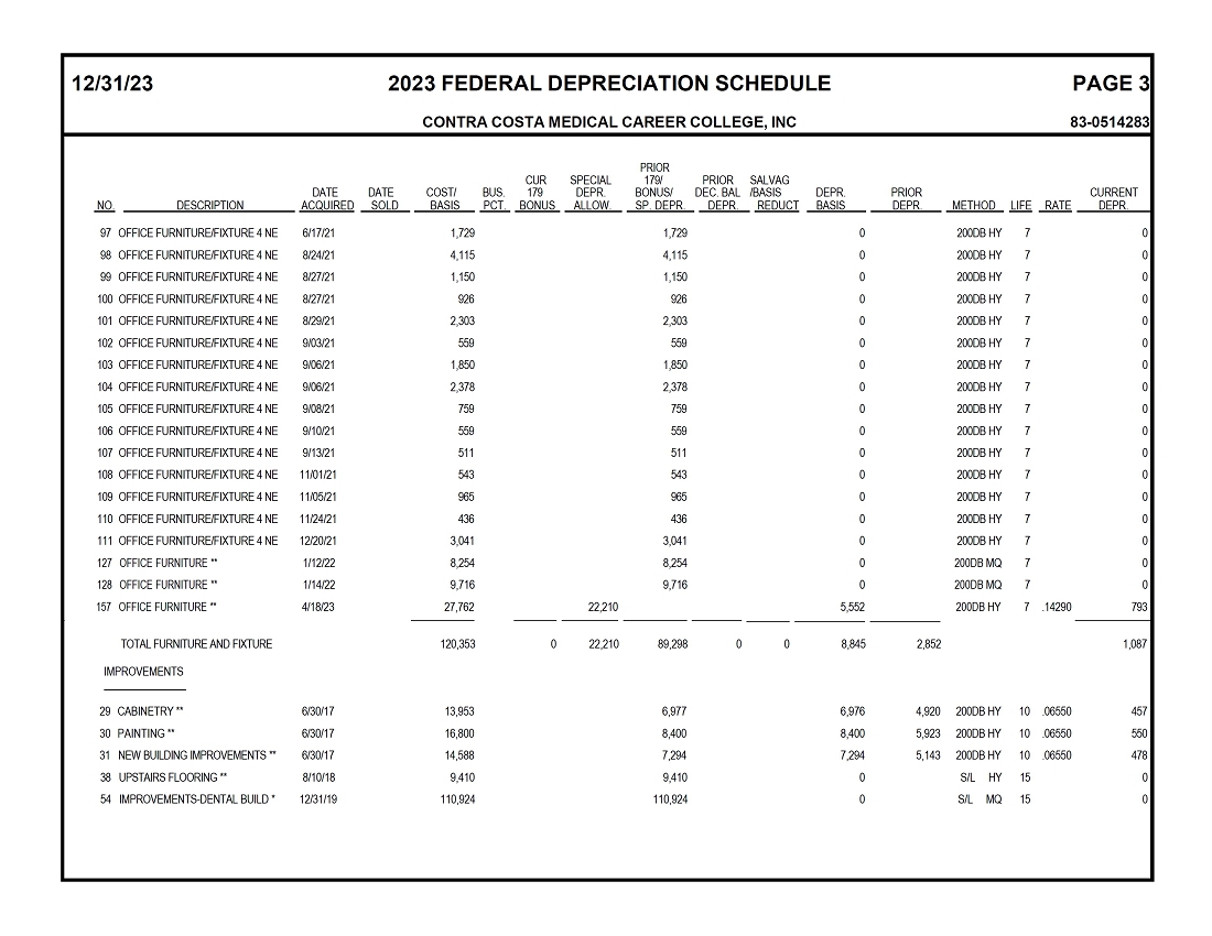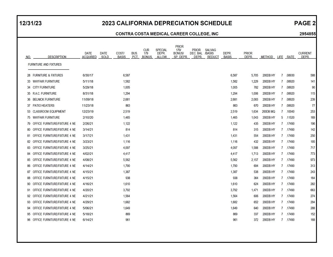 Purchased Assets” means, other than Excluded Assets, all right, title, and interest in all tangible and intangible assets of Sellers, including, without limitation, Accounts Receivables (except for the Excluded Receivable), security deposits, inventory, supplies (including professional, college, and office supplies, testers, wholesale products, and retail products), equipment, computer equipment, fixed assets, Business Records (except any records included in the Excluded Assets), curricula, work-product, contracts, leases and leasehold improvements, furniture, fixtures, equipment, prepaid expenses, licenses, advertising material, insurance proceeds, permits, signage, software, telephone numbers, website URLs, domain names, goodwill, the use of all names under which Sellers do business other than as included in the Excluded Assets, all Intellectual Property Rights, wherever located and existing as of the Closing and the going concern value associated with them. Exhibit B sets forth equipment, furniture and fixtures of Sellers used in the operation of the College as of December 31, 2023.